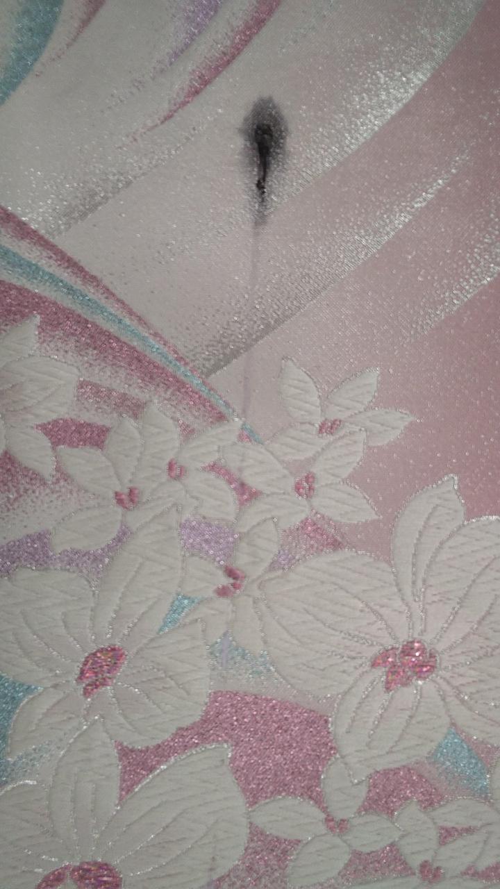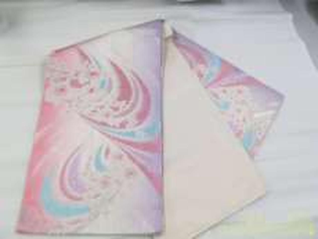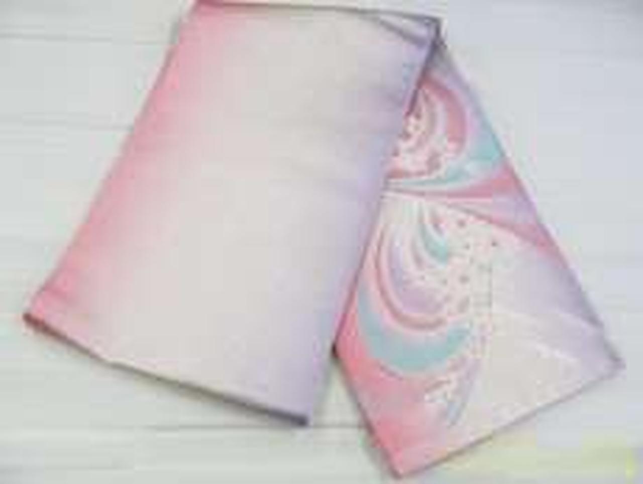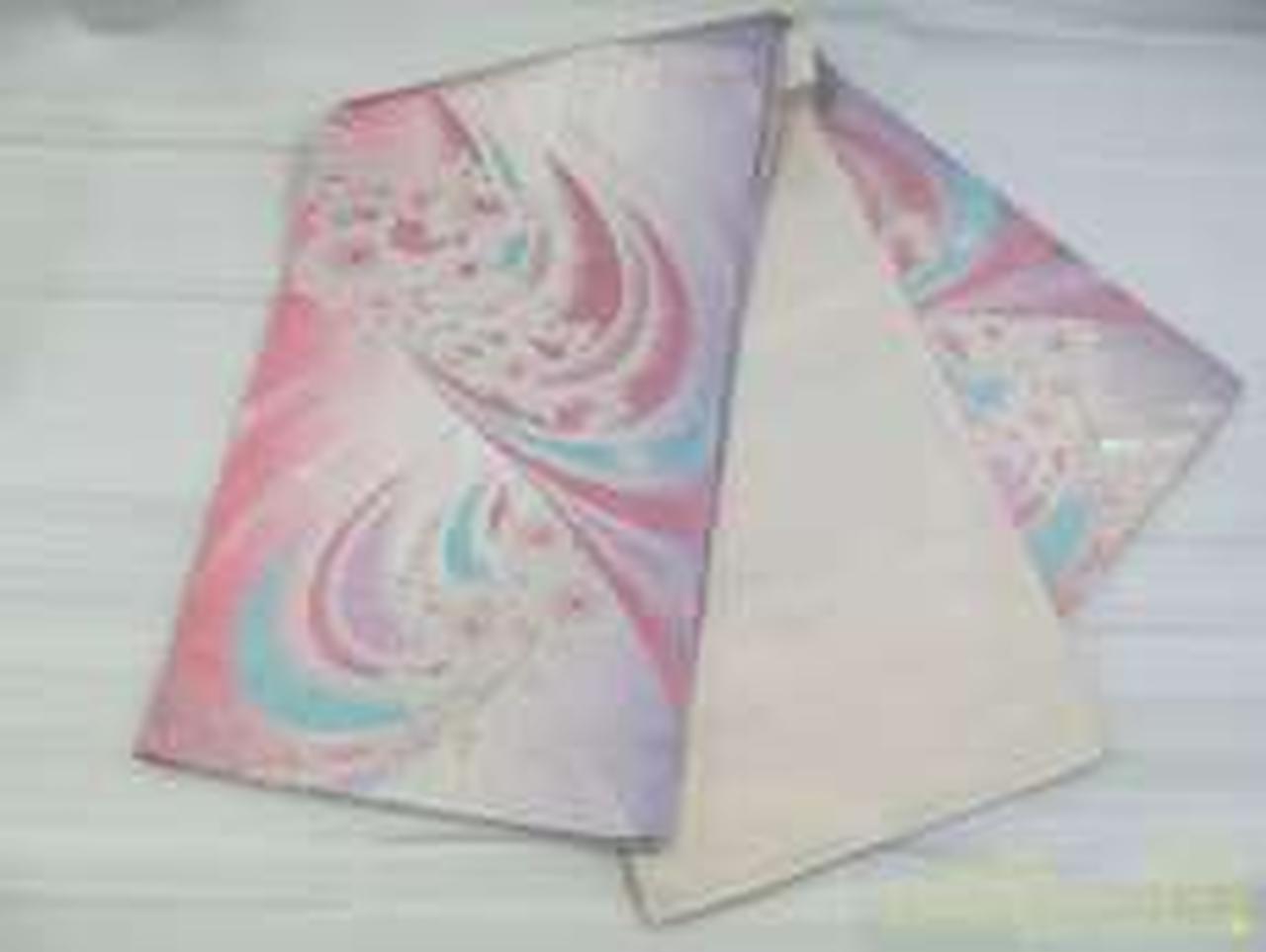 ピンク地に流れるような花やラメ入りの流線型がとても綺麗です。 |