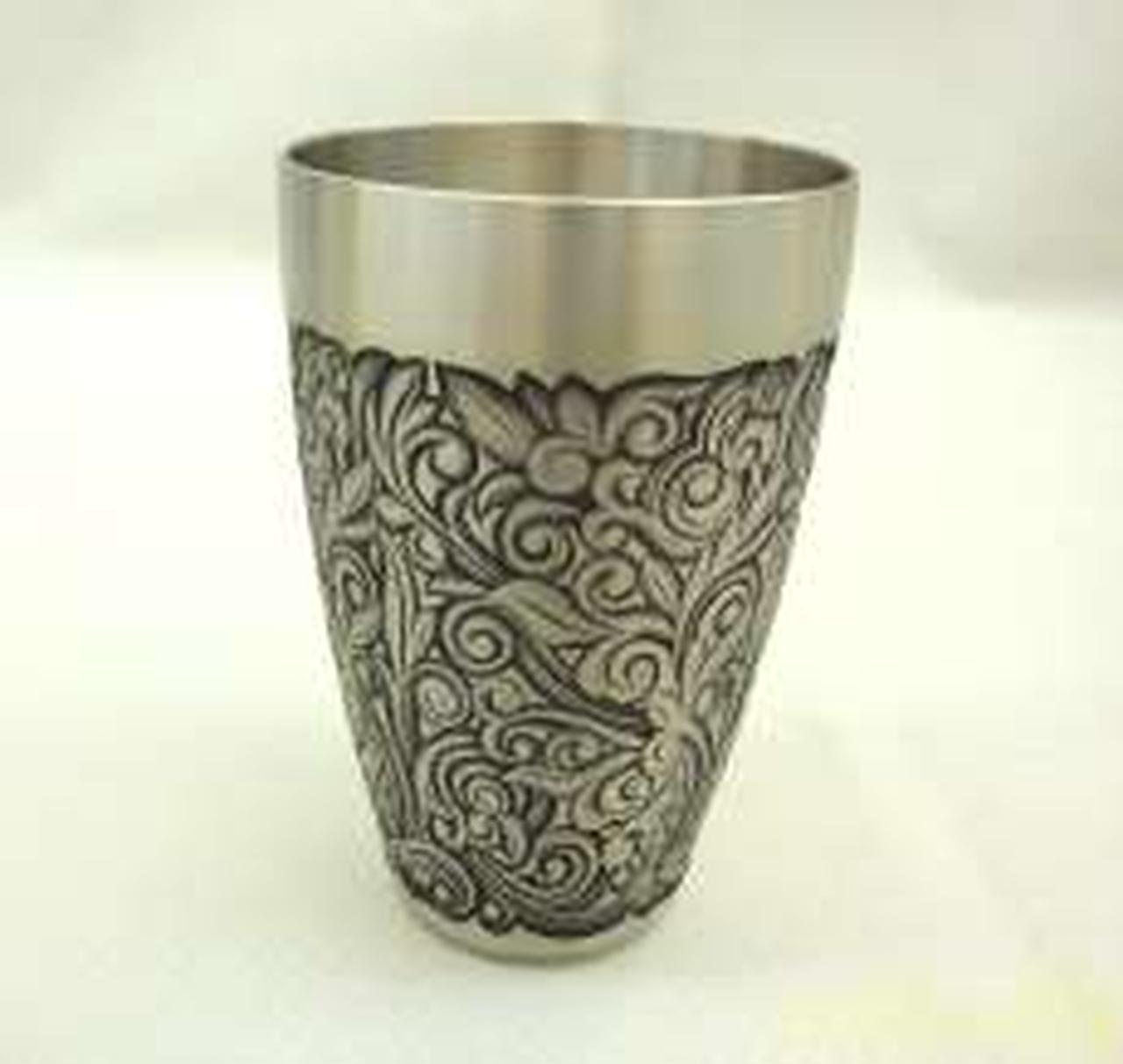 葉のモチーフの彫金で個性的です。 |
