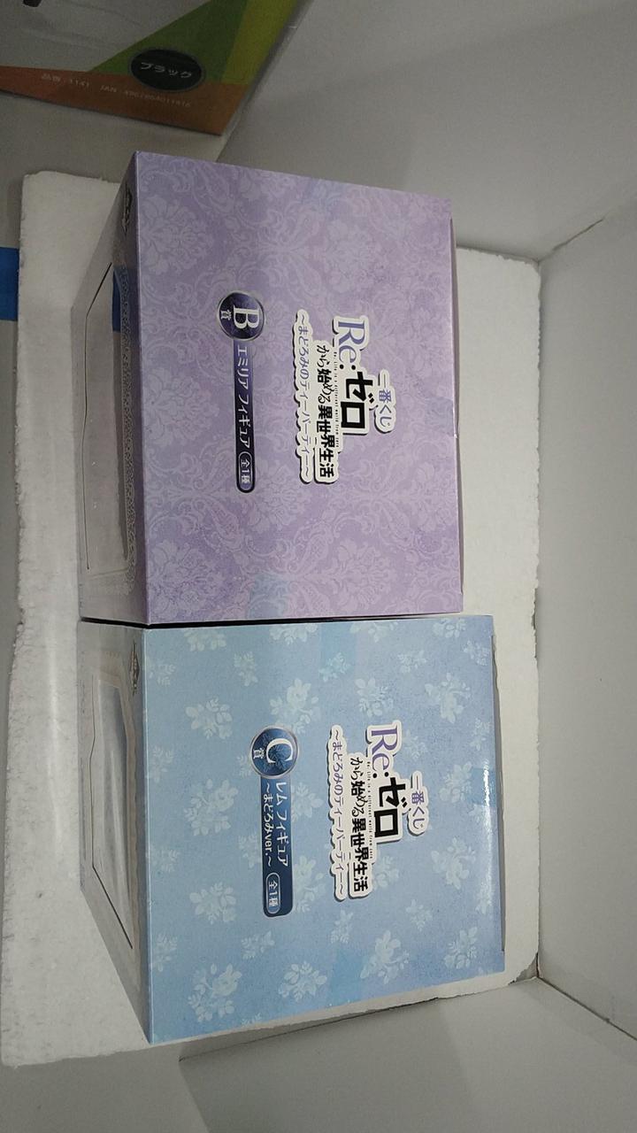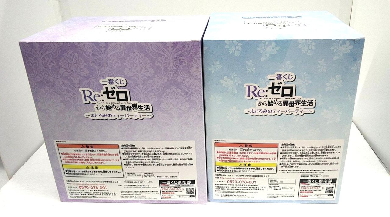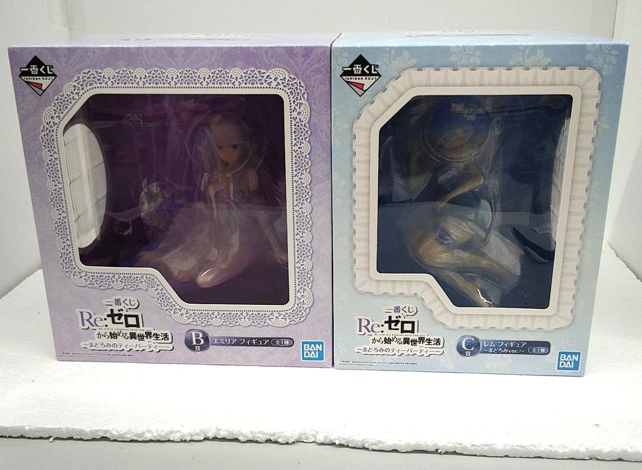 レムの箱に傷みあり(箱の縁の潰れなど) 一番くじ Re:ゼロから始める異世界生活 ~まどろみのティータイム~ B賞とC賞のセットです。2体組み合わせるとエミリアの膝枕で眠るレム、というシーンのフィギュアになります。 |