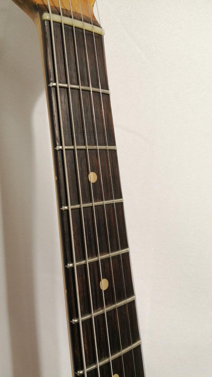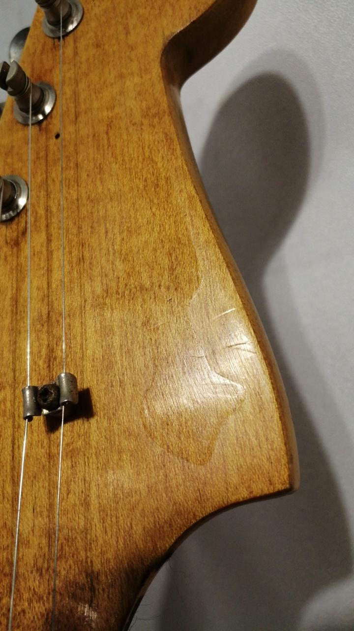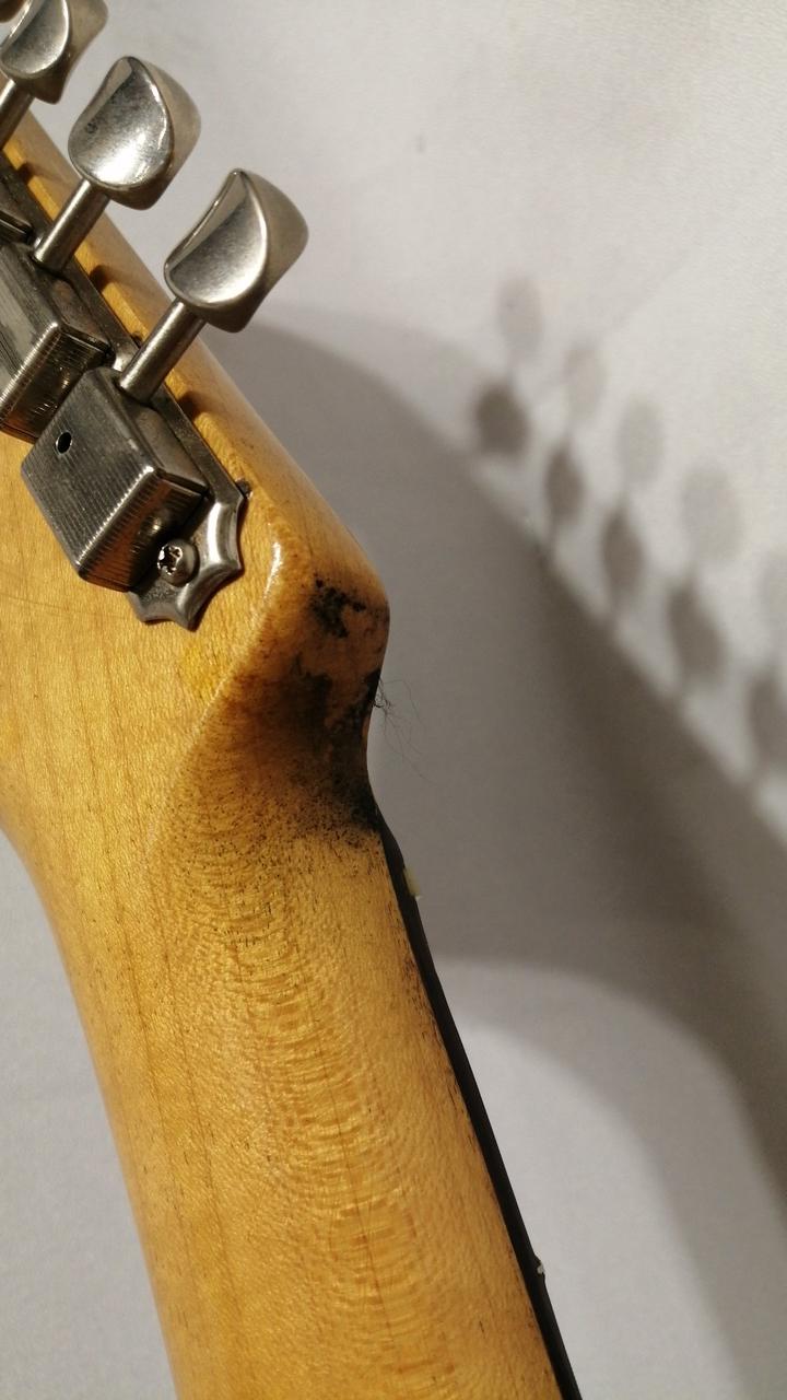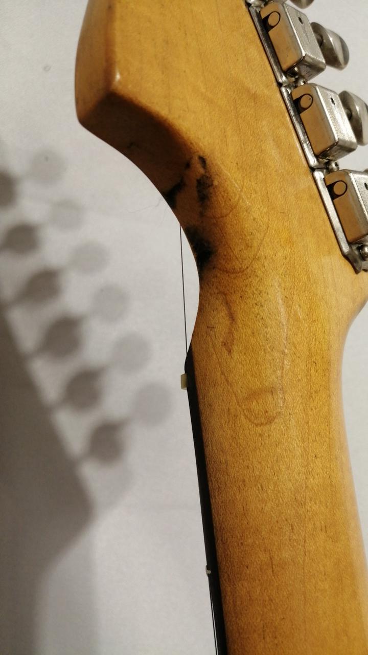 ネックはデカール剥がれの上からオーバーラッカー、フレット、ナットも交換されています。 |