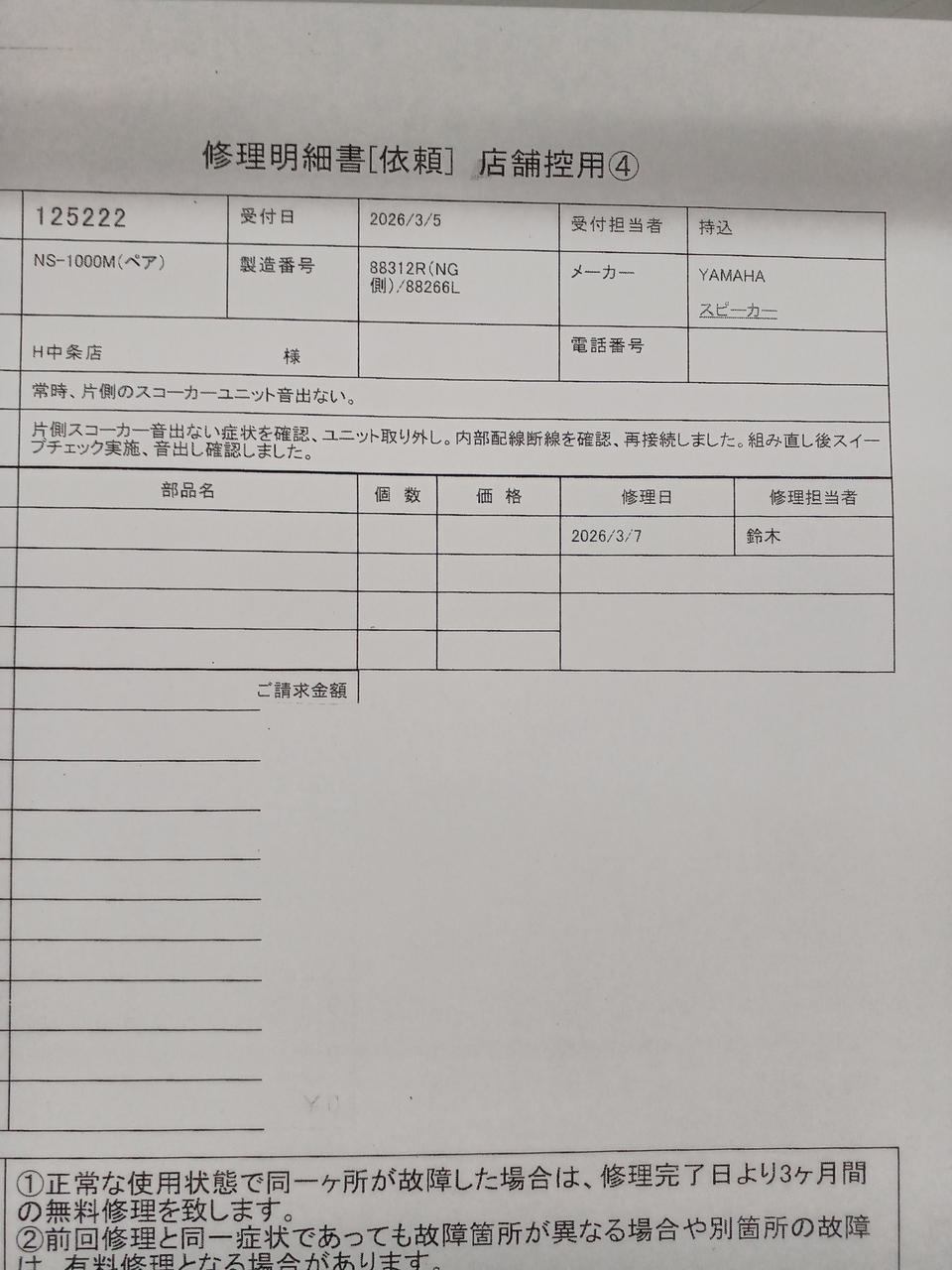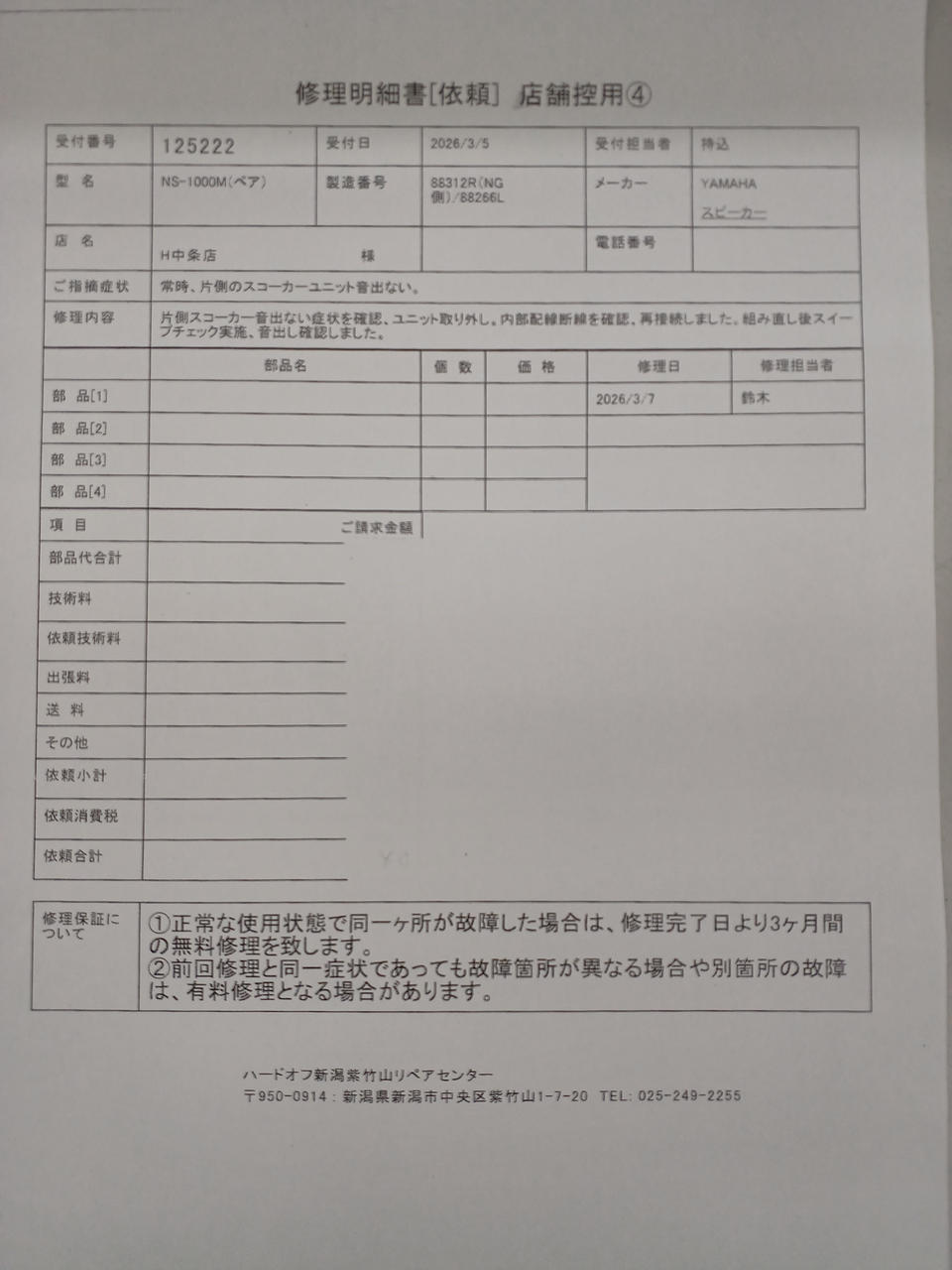 修理明細は添付画像をご確認ください |