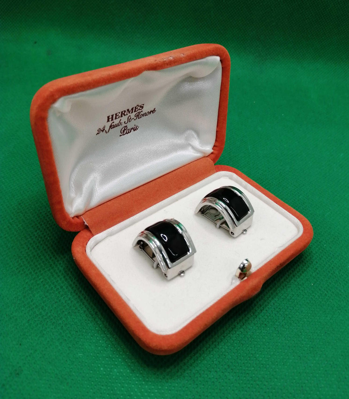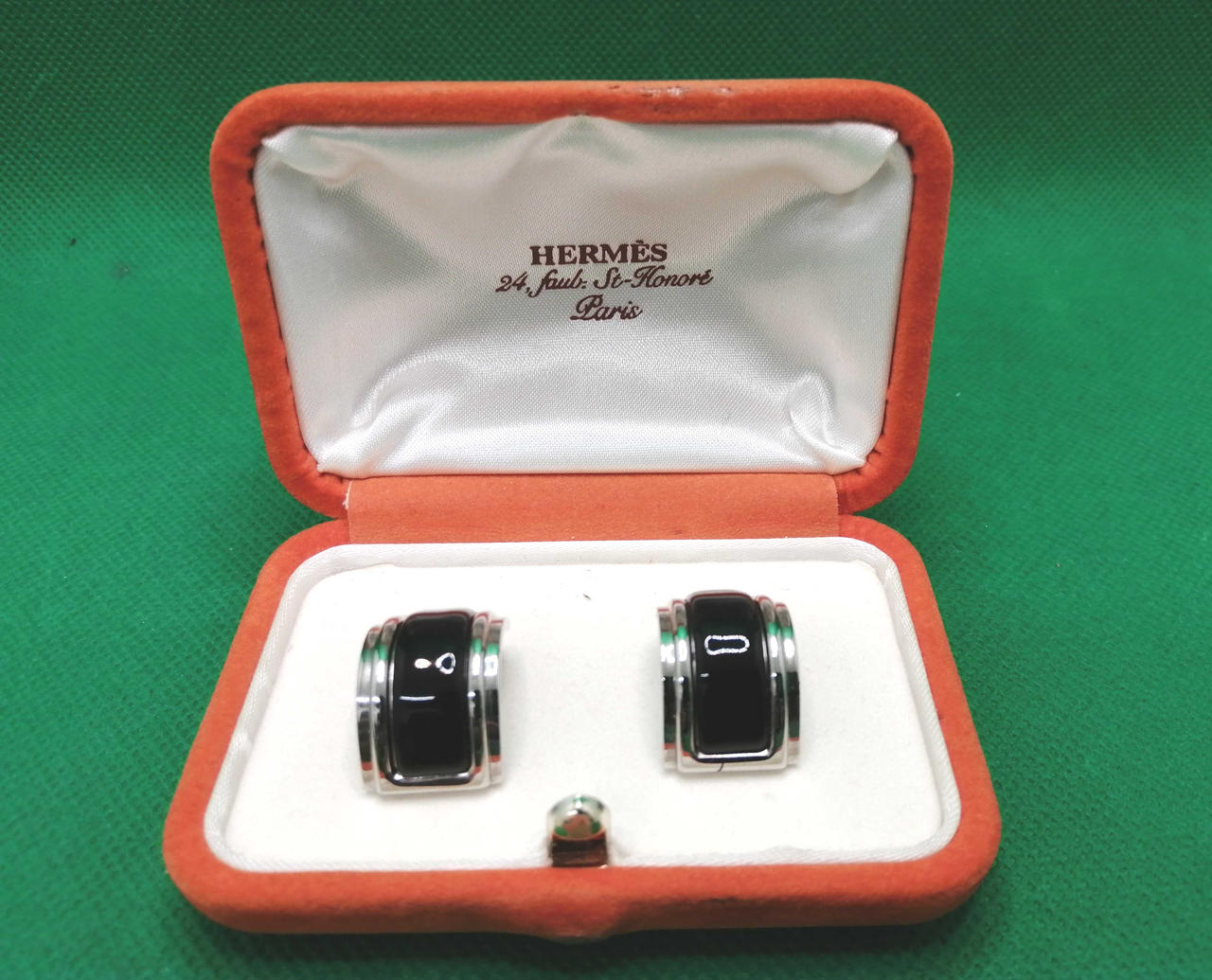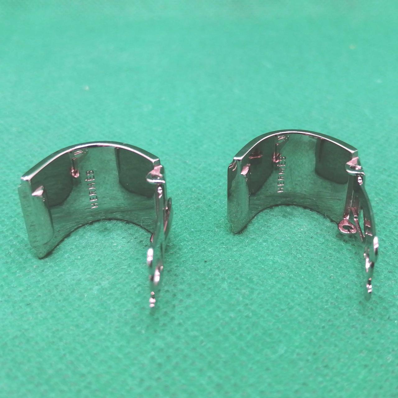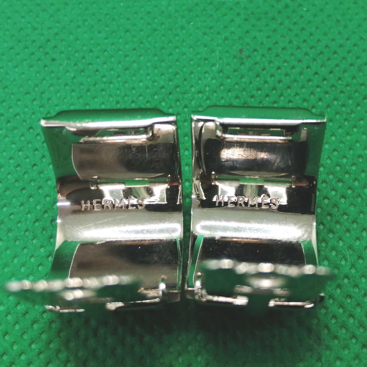 エルメスのイヤリングです。シルバーカラーに七宝の輝きが高級感溢れる逸品です。存在感のあるデザインは、ファッションのアクセントにお勧めです ☆ |