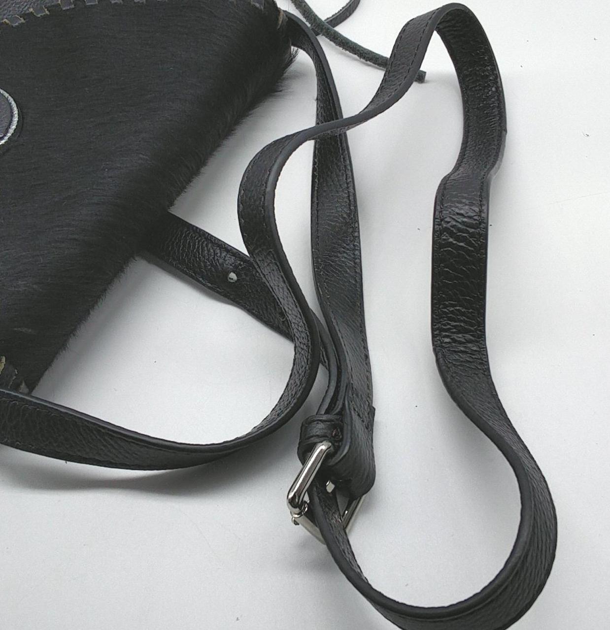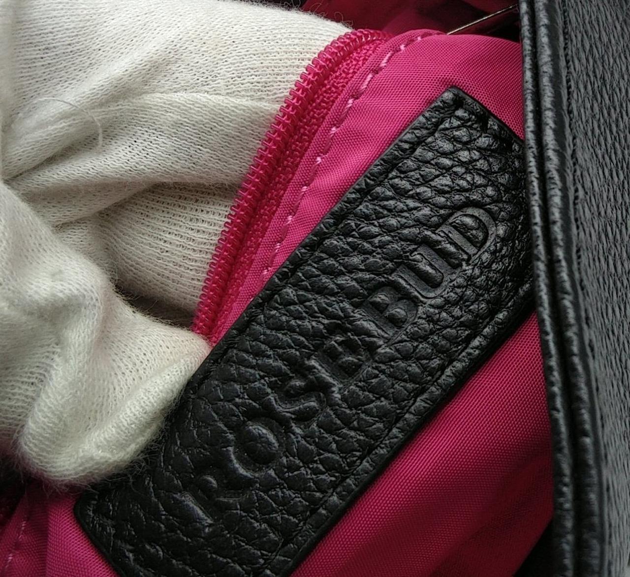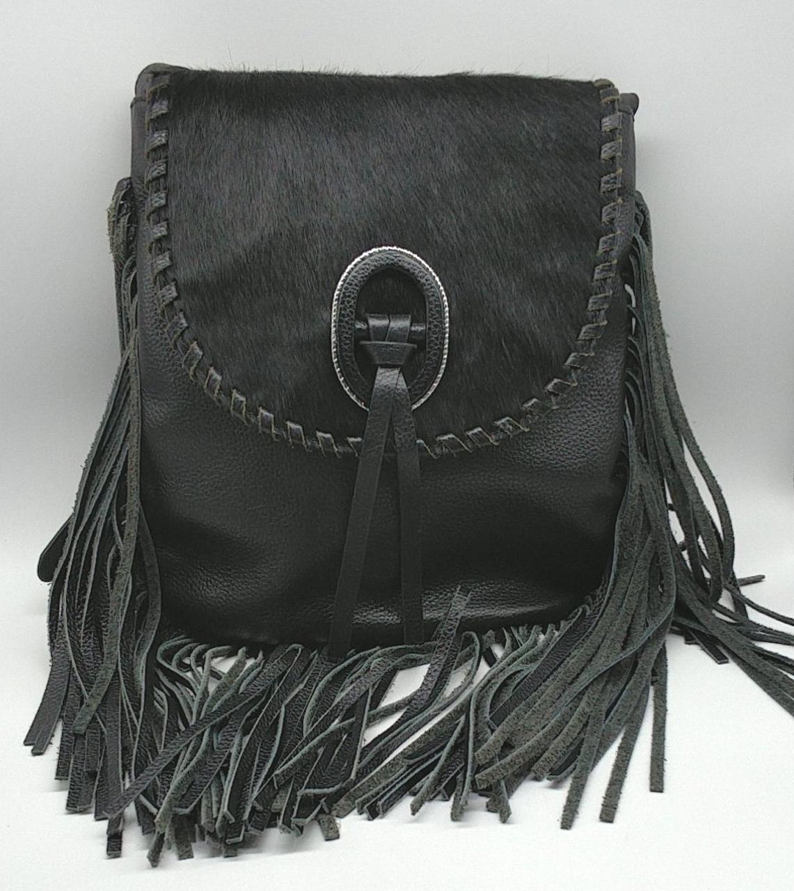 ローズバッドのレザーショルダーバックです。フリンジが目を引く個性的なデザインです。内側はピンク色です。 |