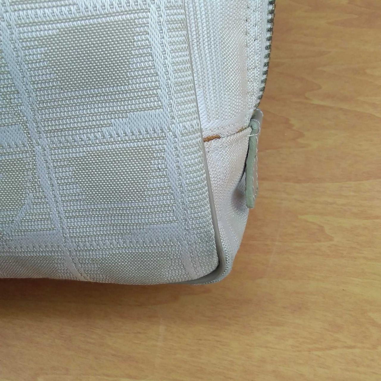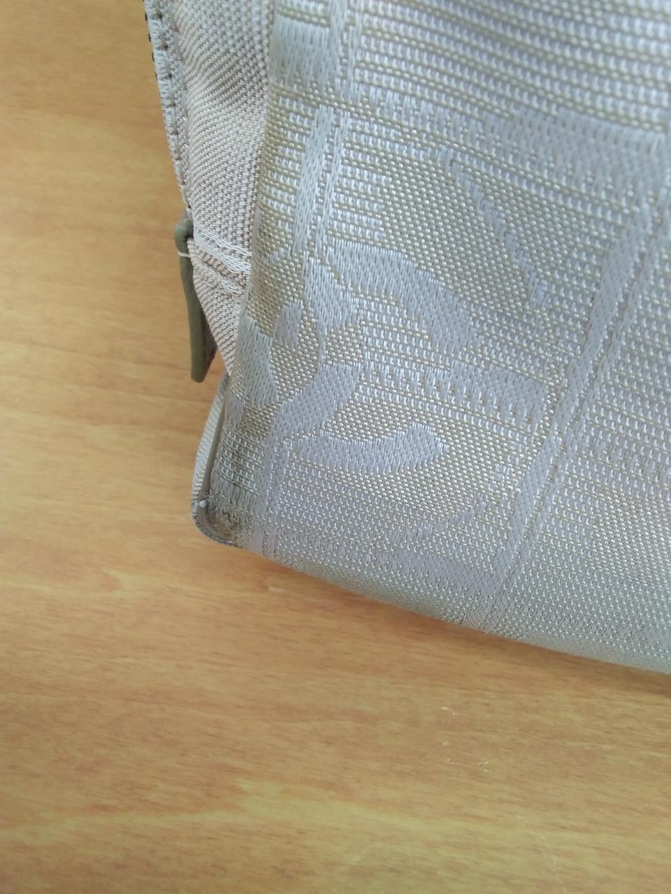 全体的にダメージ有りますが、取っ手部分は比較的キレイです。チャックダメージ有りのためか開けづらいですが、大きく広がるので、書類など入れる時に大事な書類を傷つける心配は低そうです。 |