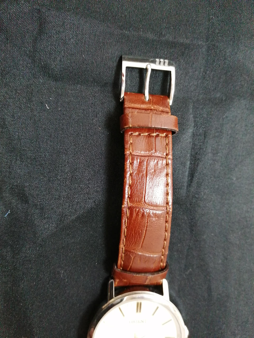 レザー部分にやや痛みがみられます。時計本体部分は金字で可愛いです!