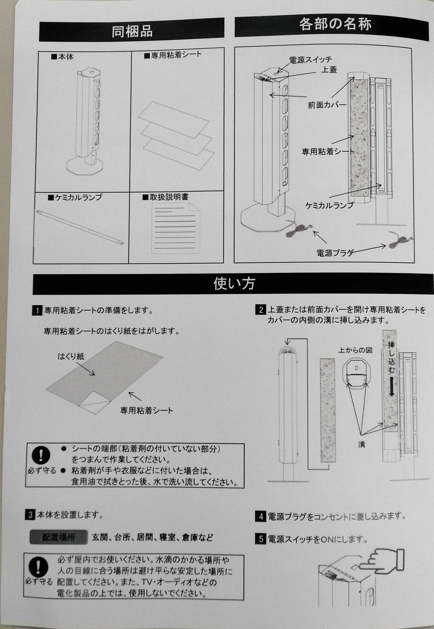 新品未開封品。60Hzのため西日本でしか使えません。東日本で使われる場合は、周波数変換器をお使いください。粘着シート、ケミカルランプについては消耗品のため、古くなった場合はお客様のご負担で再度ご購入になりますのでご了承ください。専用のダンボールにプチプチを巻いた後、直接送り状を貼らせていただきます。 |