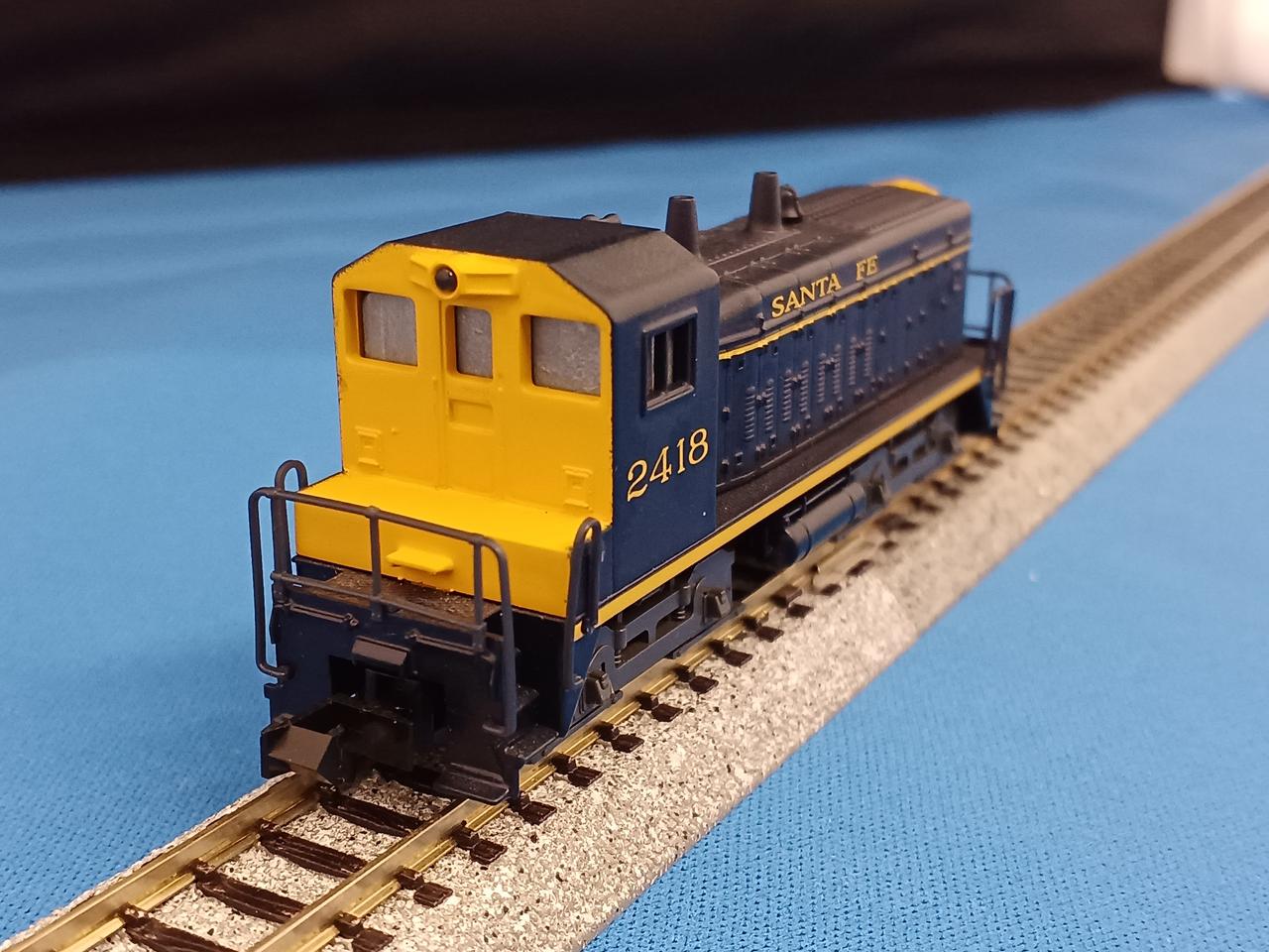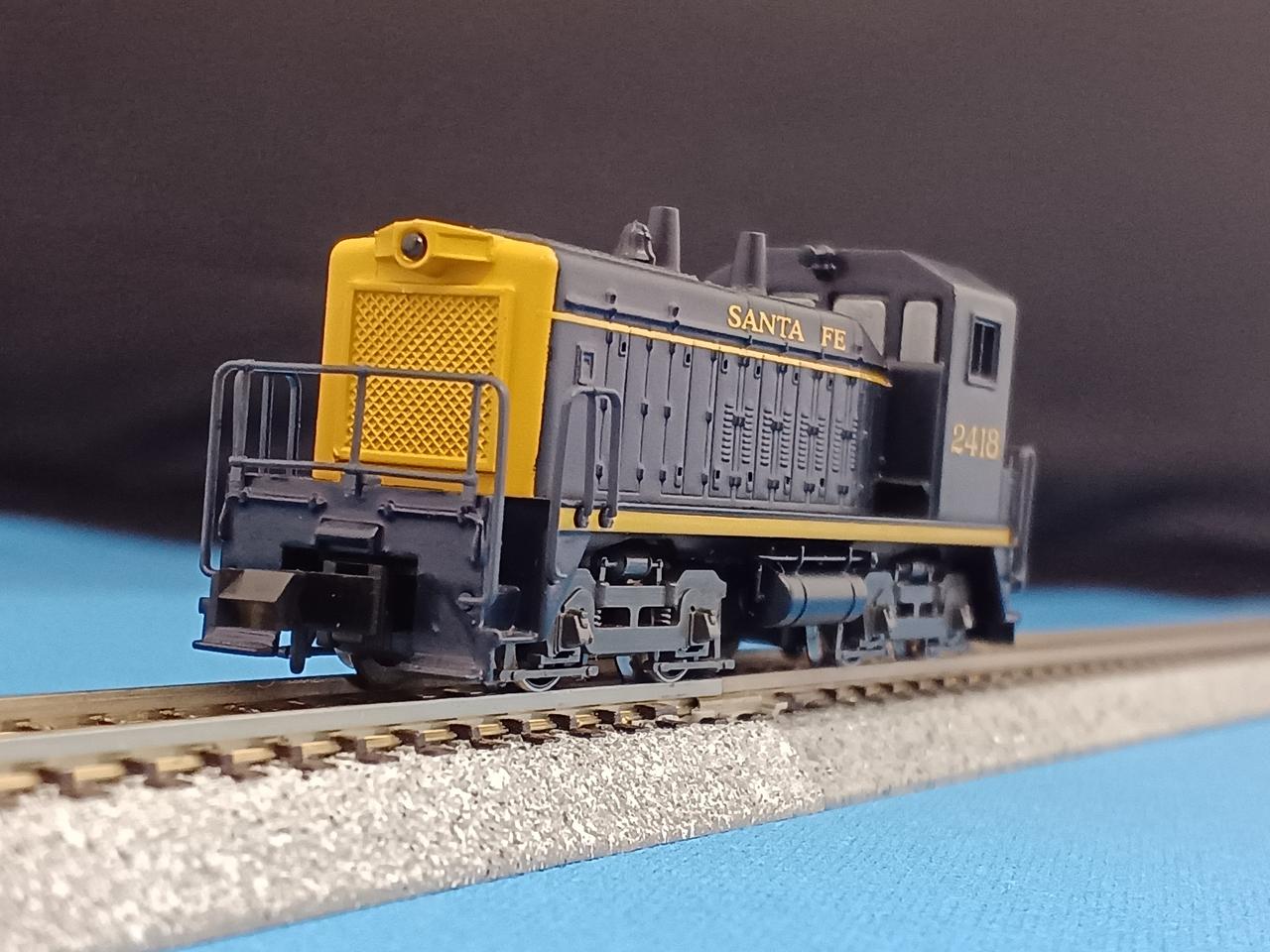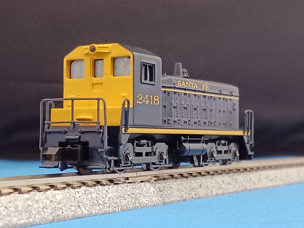 古い製品でライトは点灯しません。車体もダイカストでズッシリとしています。動作OKですが走行時にカチャカチャと音がします。ギア割れの前兆かもしれませんが、今のところスムーズに走ります。実車は1966年から1974年まで製造された入換用電気式ディーゼル機関車です。ヤードでの貨物入換や本線での小運転、ラッセル車推進運転などでアメリカ各地の鉄道会社で使われています。日本でいえばDE10的なポジションでしょうか。製造数が多いので、80年代のアメリカのTVドラマにも港湾地区で走行しているシーンを見た方も多いことと思います。運転台を撤去したBユニットやリモコン操作による無人入換車に改造された車両や、更に発電エンジンを撤去して走行用電気を他車からもらい走行するスラグ車になった車両も多くいます。