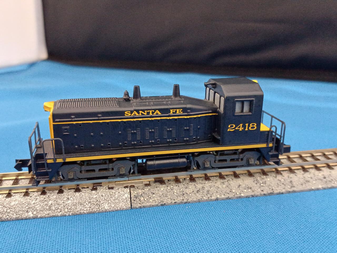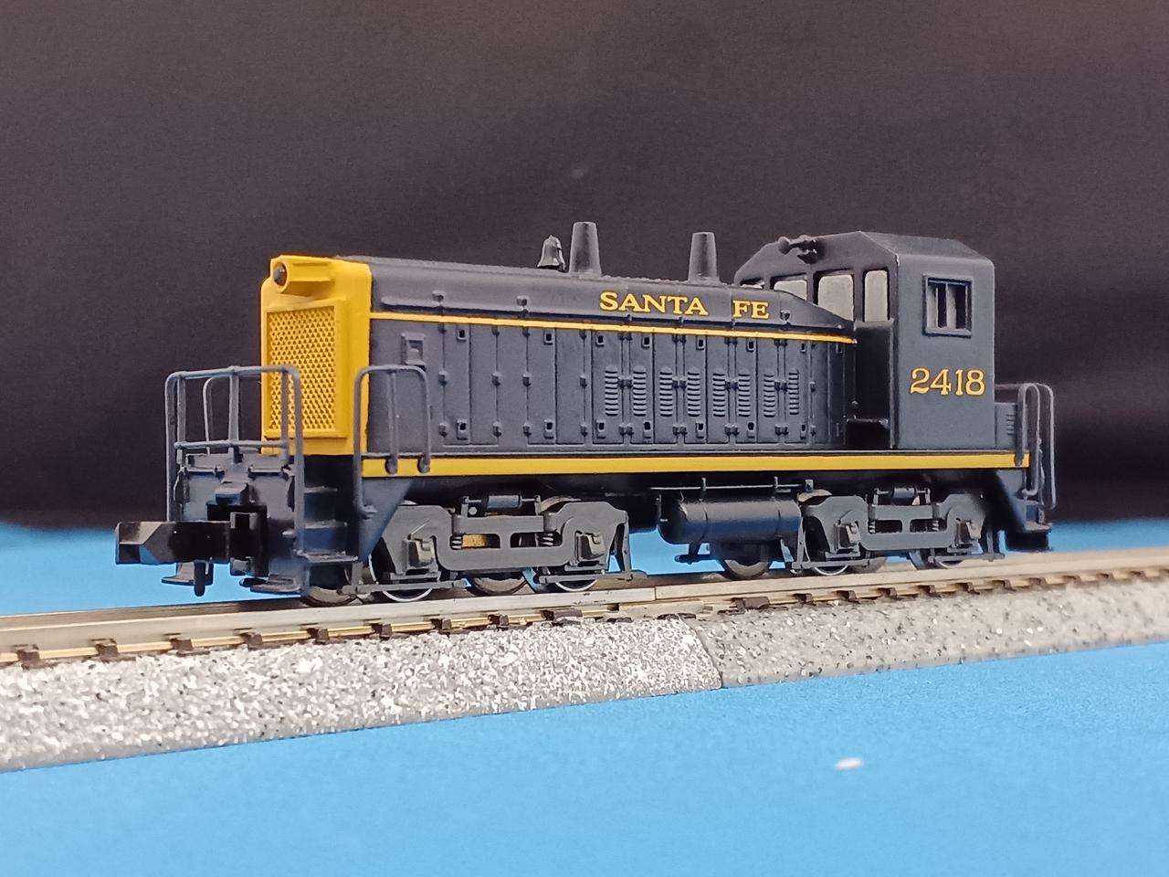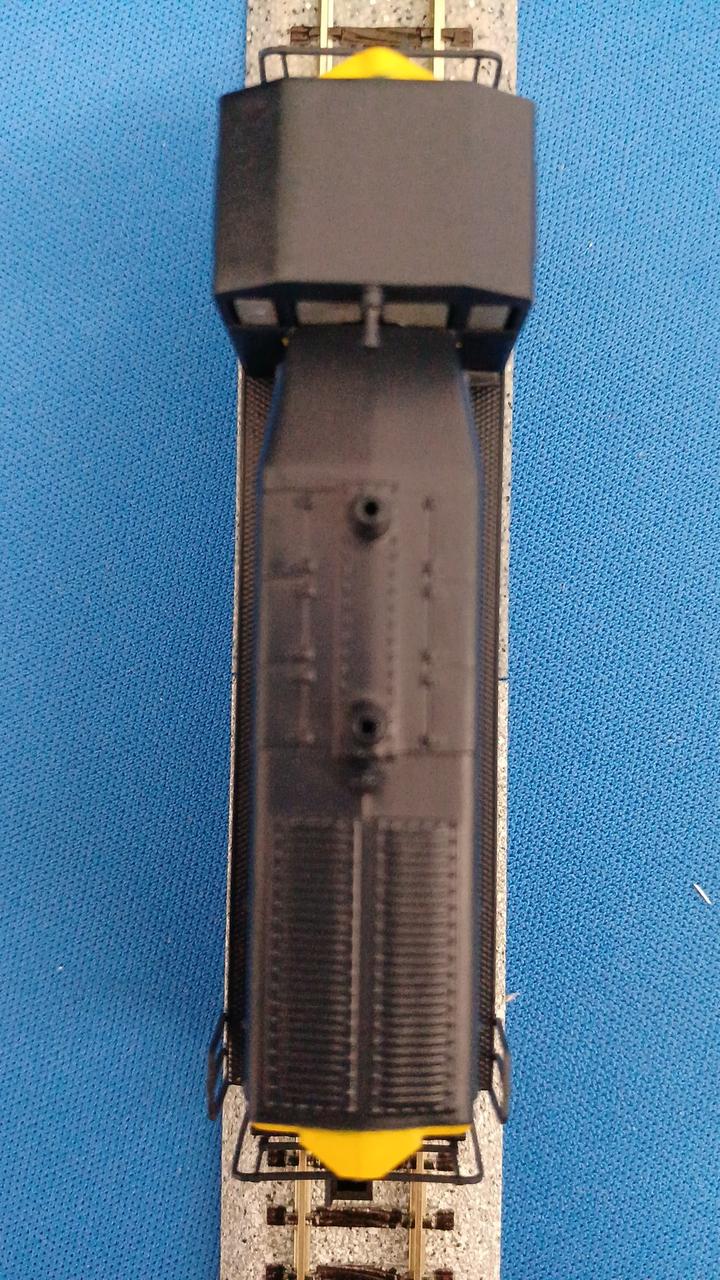 古い製品でライトは点灯しません。車体もダイカストでズッシリとしています。動作OKですが走行時にカチャカチャと音がします。ギア割れの前兆かもしれませんが、今のところスムーズに走ります。実車は1966年から1974年まで製造された入換用電気式ディーゼル機関車です。ヤードでの貨物入換や本線での小運転、ラッセル車推進運転などでアメリカ各地の鉄道会社で使われています。日本でいえばDE10的なポジションでしょうか。製造数が多いので、80年代のアメリカのTVドラマにも港湾地区で走行しているシーンを見た方も多いことと思います。運転台を撤去したBユニットやリモコン操作による無人入換車に改造された車両や、更に発電エンジンを撤去して走行用電気を他車からもらい走行するスラグ車になった車両も多くいます。