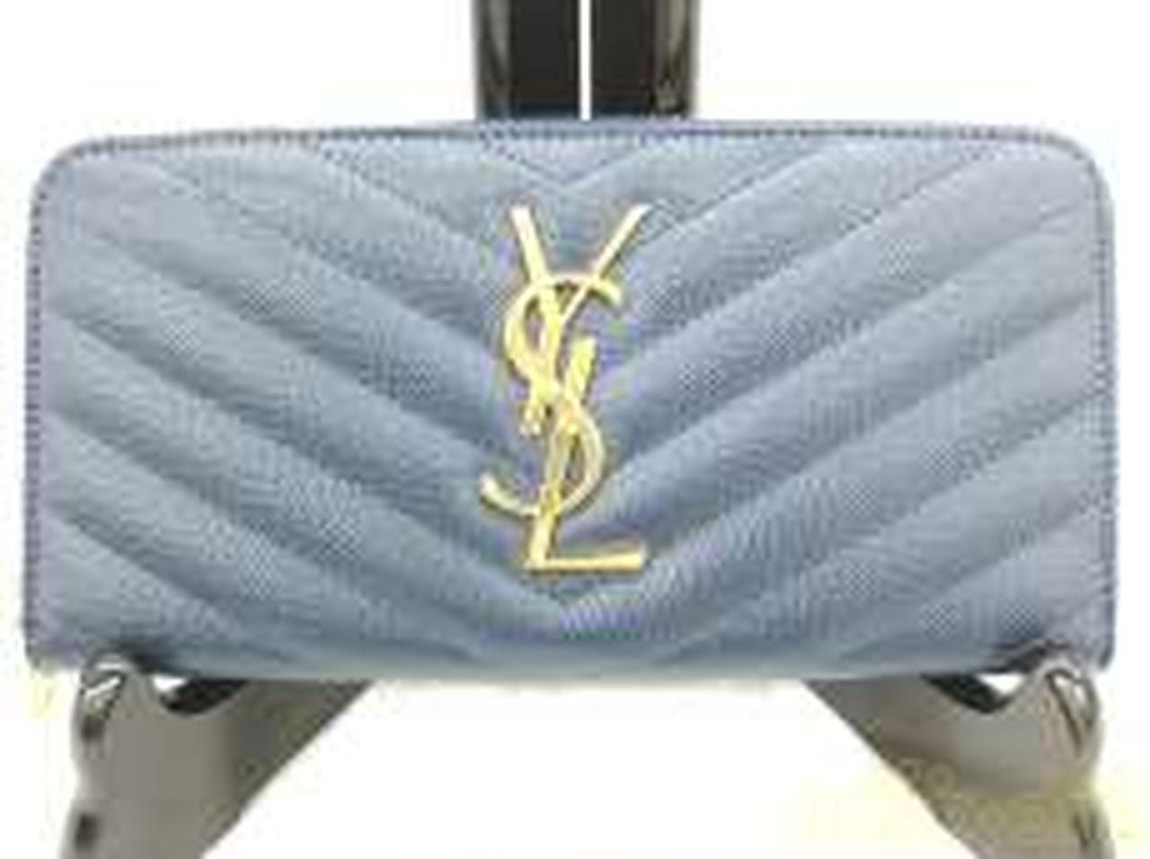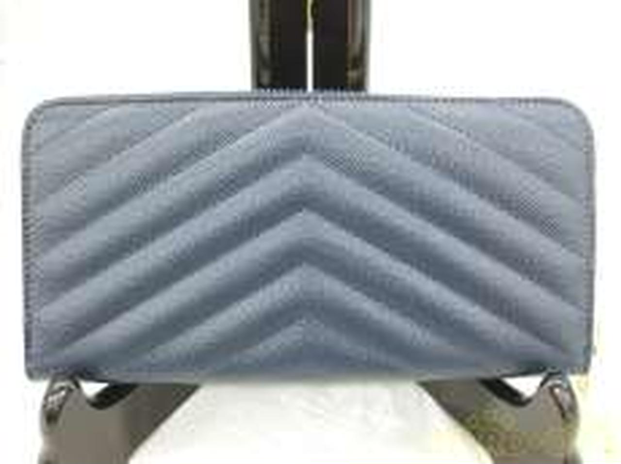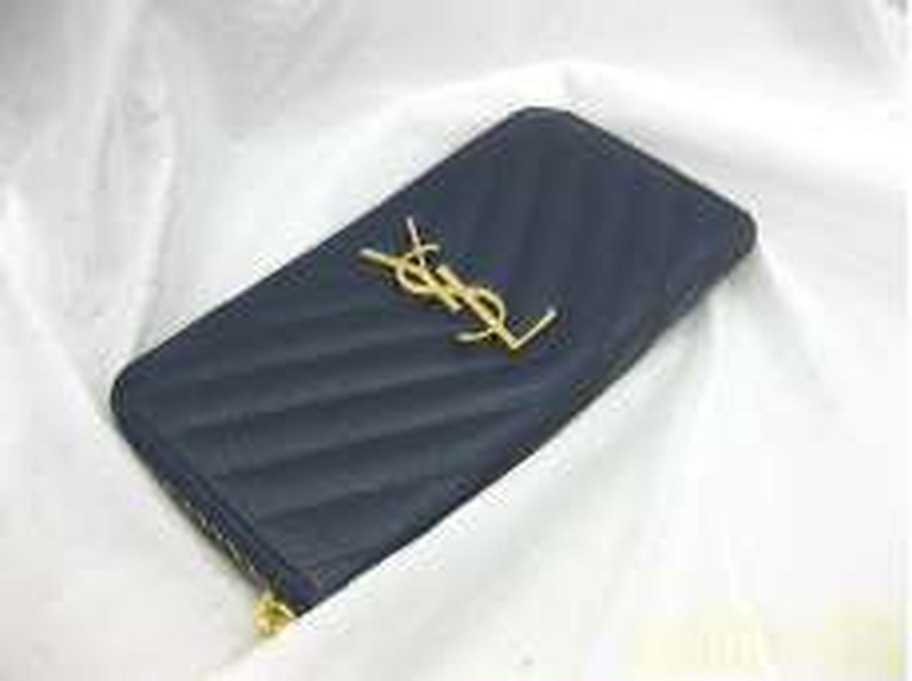 サンローランパリの【モノグラム】長財布は、ネイビー【NERO】カーフスキンのグレインレザーにキルティングステッチが施されたクラシカルなデザイン。こまかな凹凸の光沢が美しく映える上品な仕上がりです。定番である『YSL』のロゴを噛み合わせたことにより、エレガントさが増し、オトナの女性を演出してくれます。ジップファスナーを開けると、お札入れが2つ、小銭入れが1つにカード入れが12枚、ポケットが2つと、収納性も十分兼ね備え、シーンを選ぶことなく使えます! |