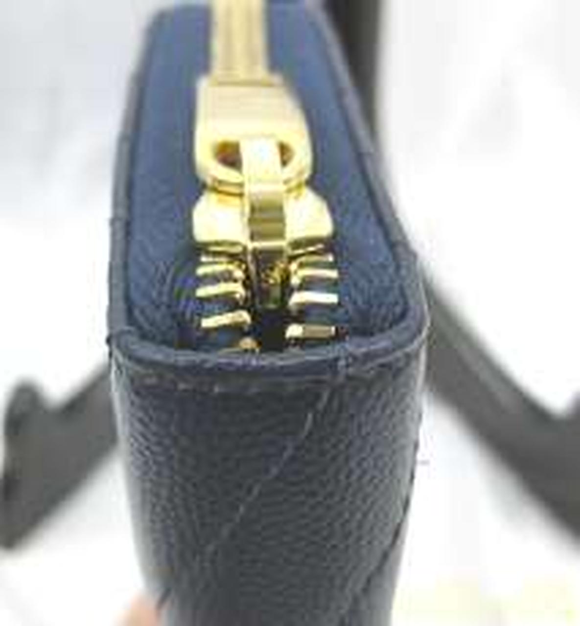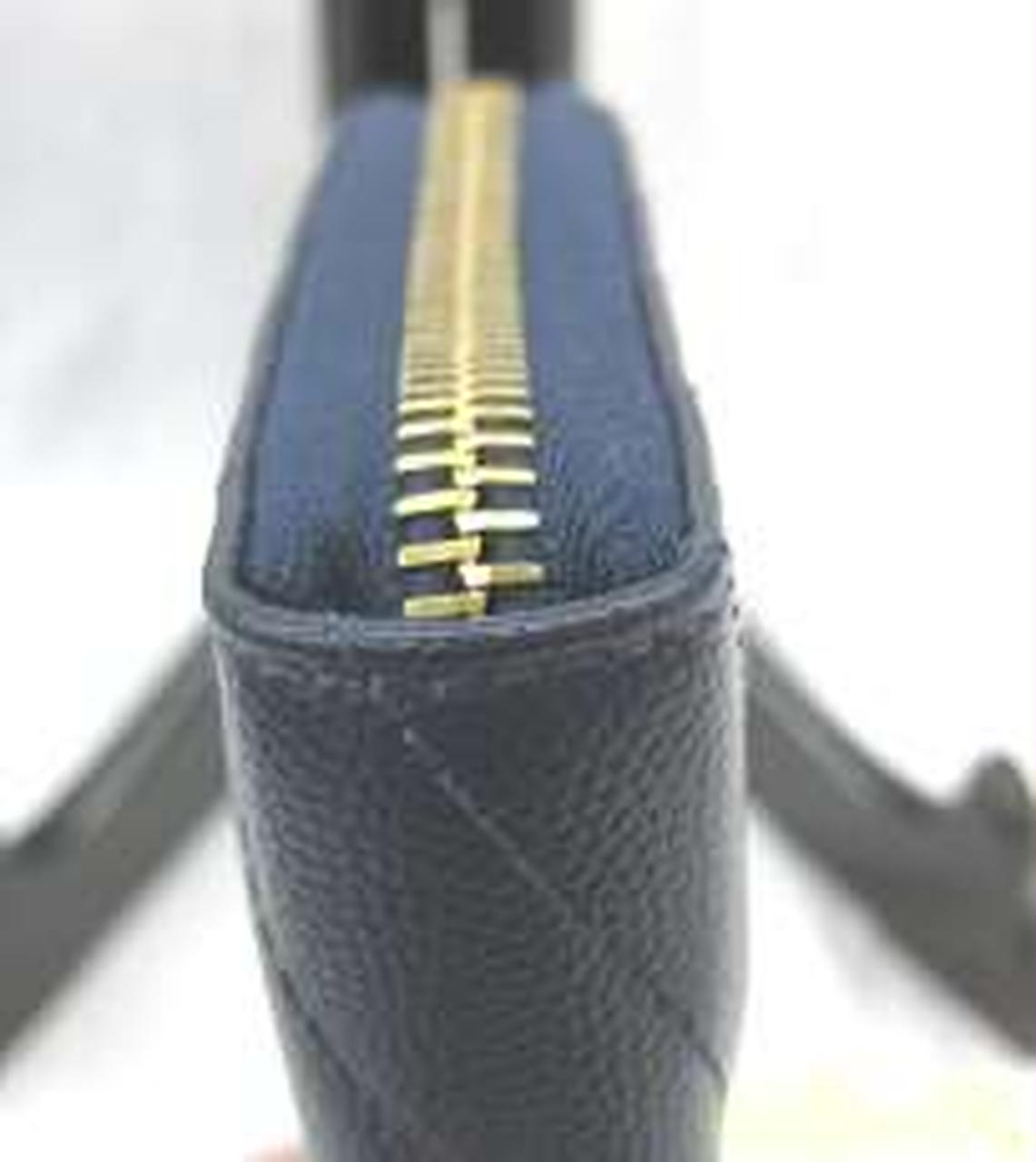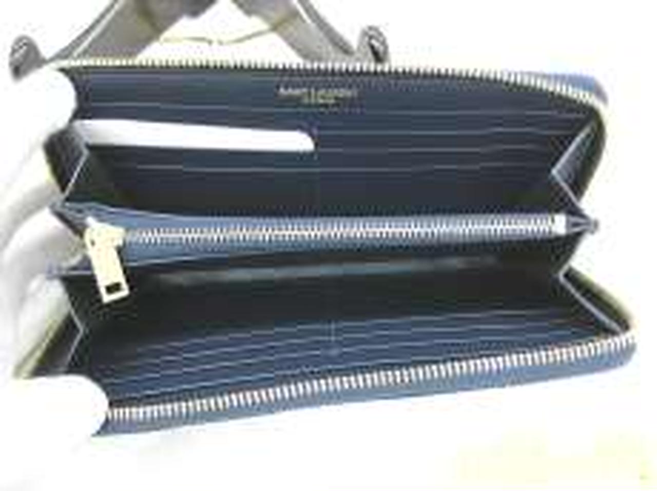 サンローランパリの【モノグラム】長財布は、ネイビー【NERO】カーフスキンのグレインレザーにキルティングステッチが施されたクラシカルなデザイン。こまかな凹凸の光沢が美しく映える上品な仕上がりです。定番である『YSL』のロゴを噛み合わせたことにより、エレガントさが増し、オトナの女性を演出してくれます。ジップファスナーを開けると、お札入れが2つ、小銭入れが1つにカード入れが12枚、ポケットが2つと、収納性も十分兼ね備え、シーンを選ぶことなく使えます! |