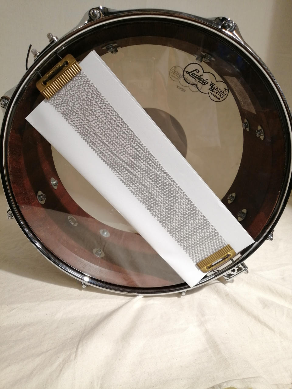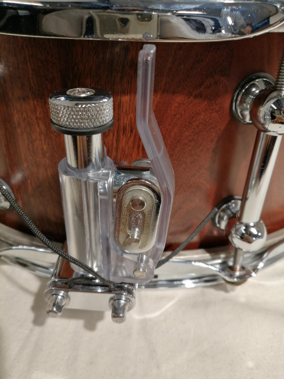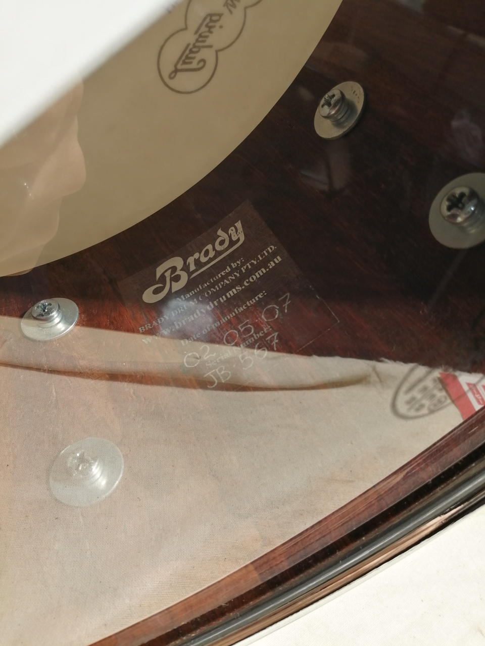 今は事業をたたんでしまい、入手困難になってしまったChris Brady氏のブランド・メーカー、Bradyのスネア。スティーブジョーダン、ジェフポーカロが使用したことでも有名なメーカーです。ブロックシェル仕様でプライシェルよりも素早いディケイで太い音像、安定感のある力強いサウンドが特徴です。 |