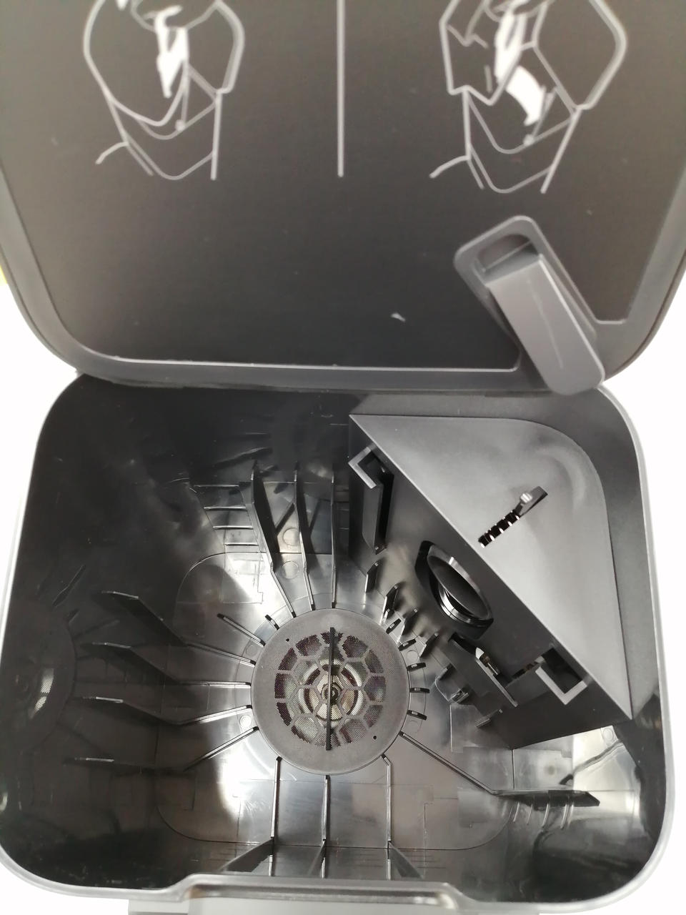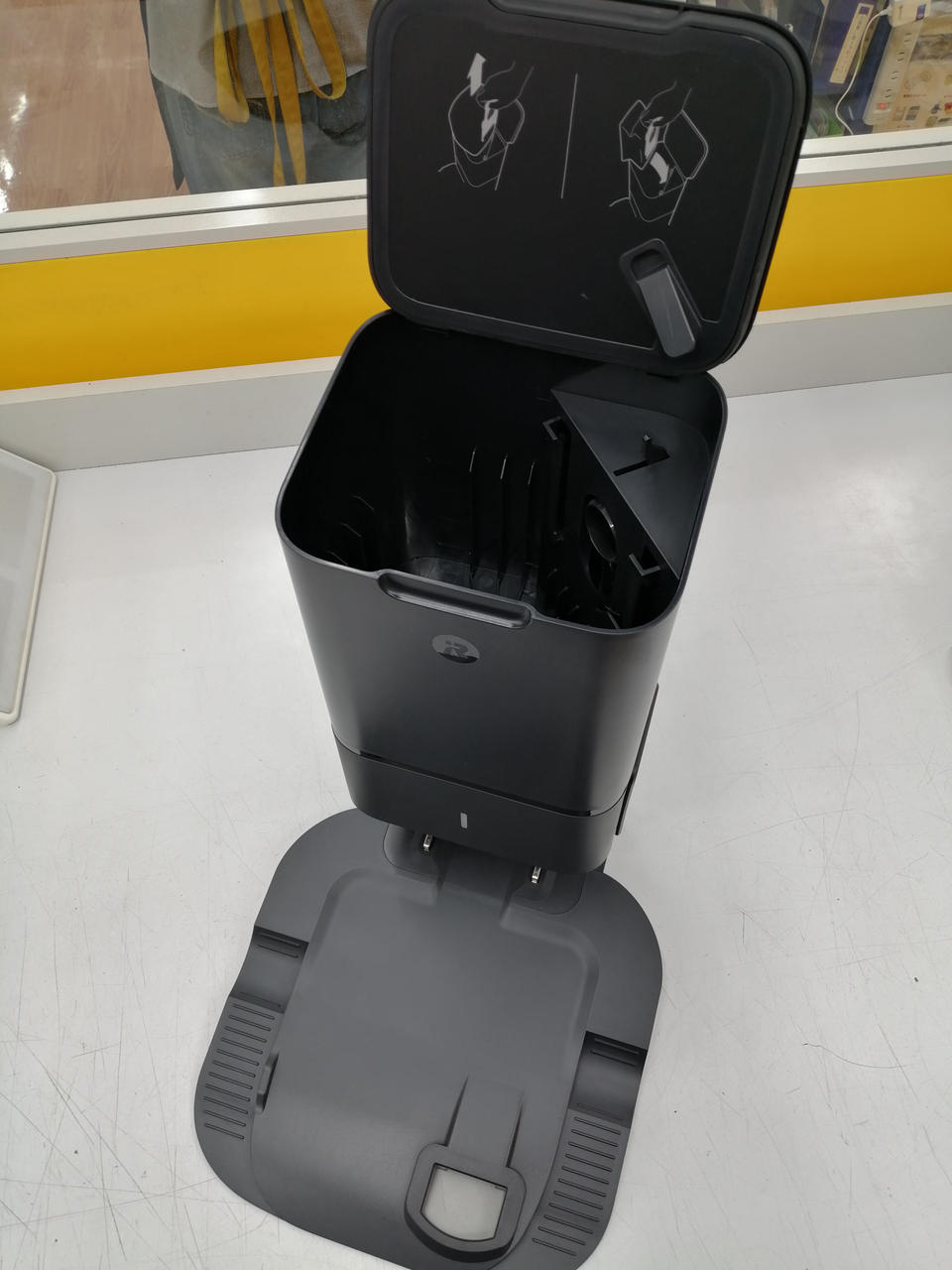 掃除が終わると本体のダスト容器のゴミをクリーンベース内の密封型紙パックに自動で排出するロボット掃除機 |