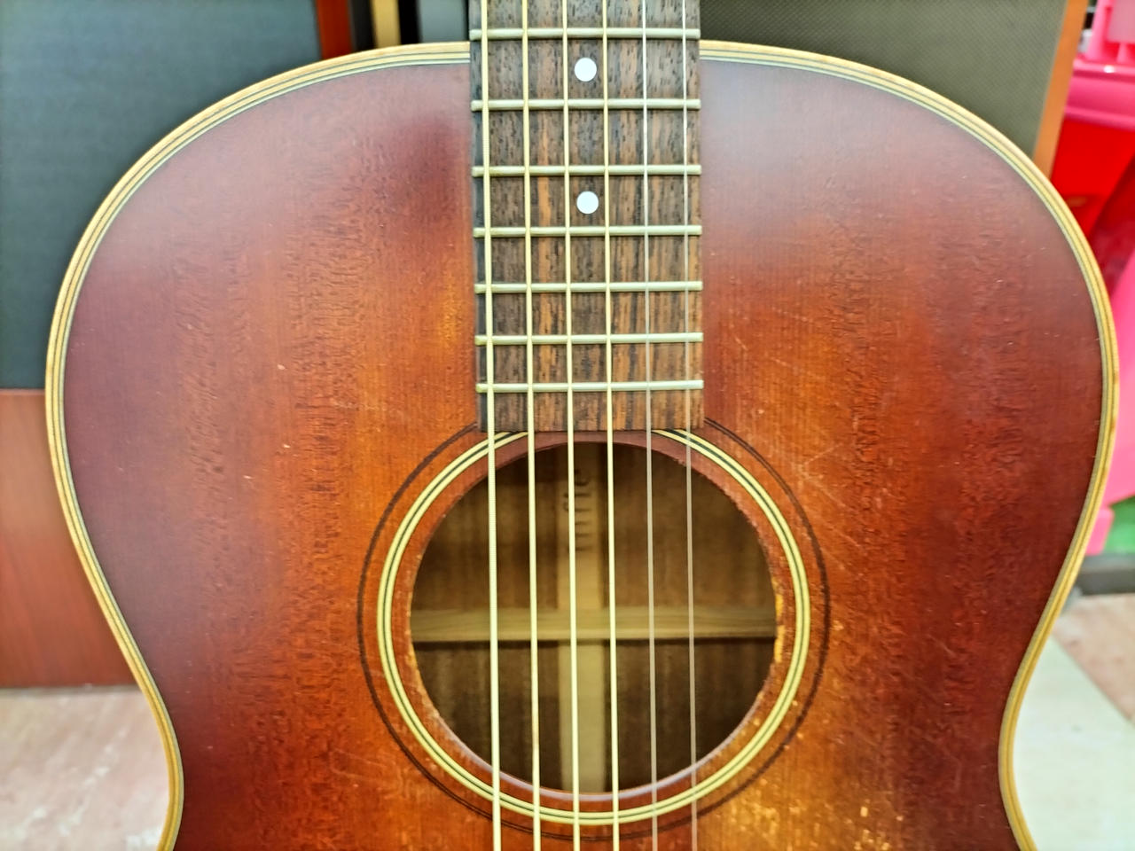 スプルーストップ サイドバックネックマホガニー、指板ローズウッド |