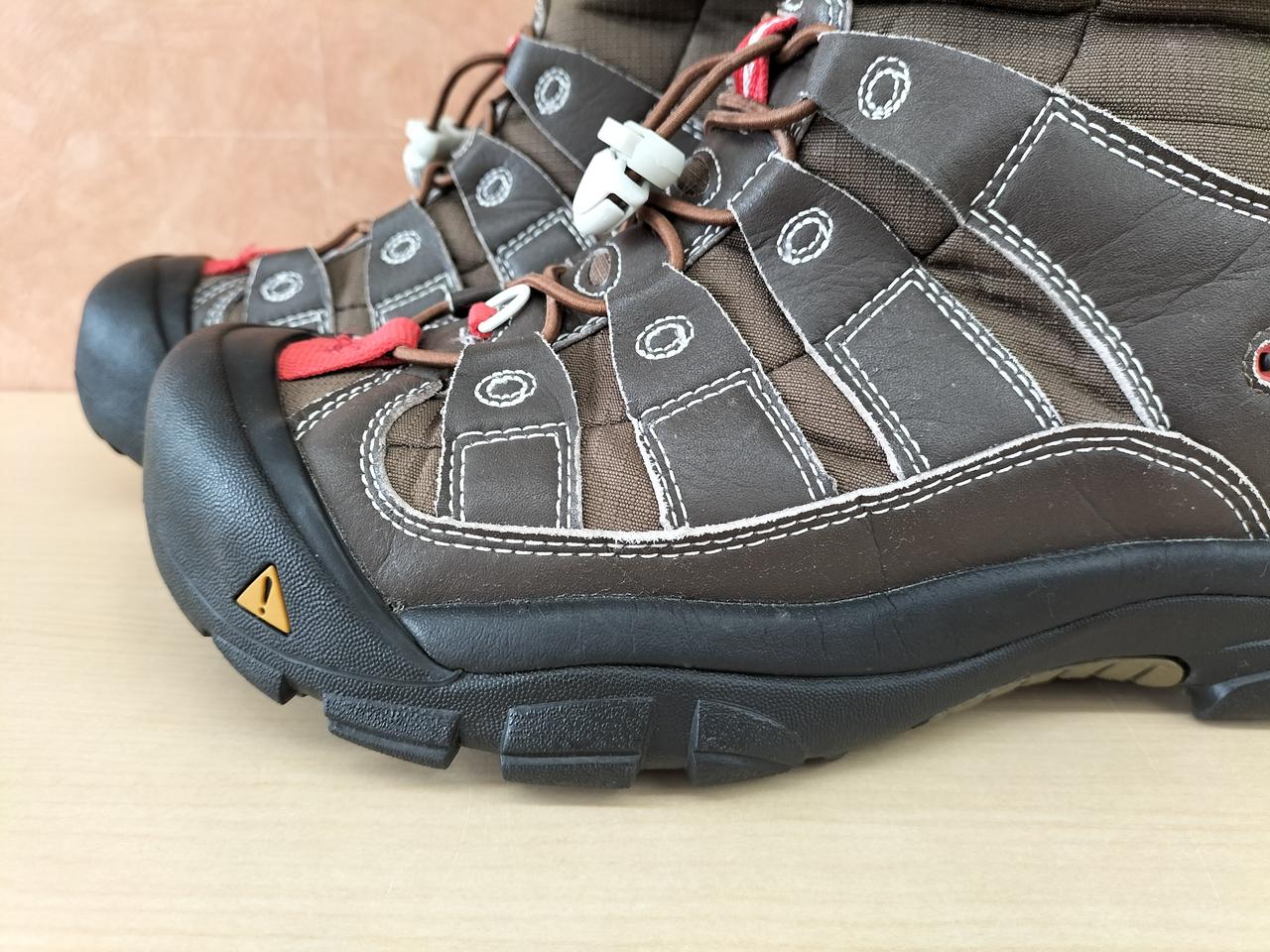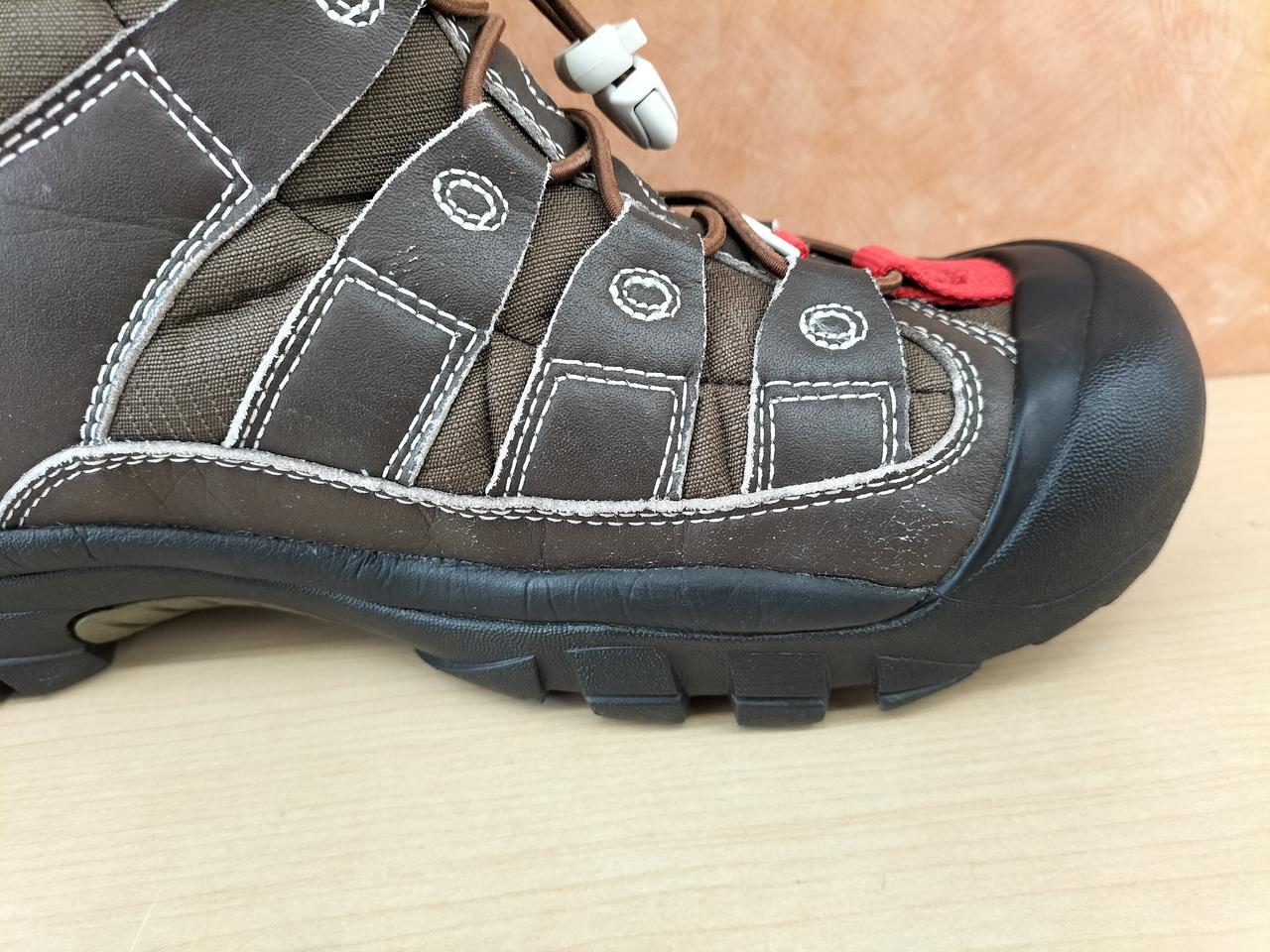 レザー部分各所に細いはがれあり。また内側も毛羽立ち等多いです。使用感ありますが、しっかりとした作りです。 |