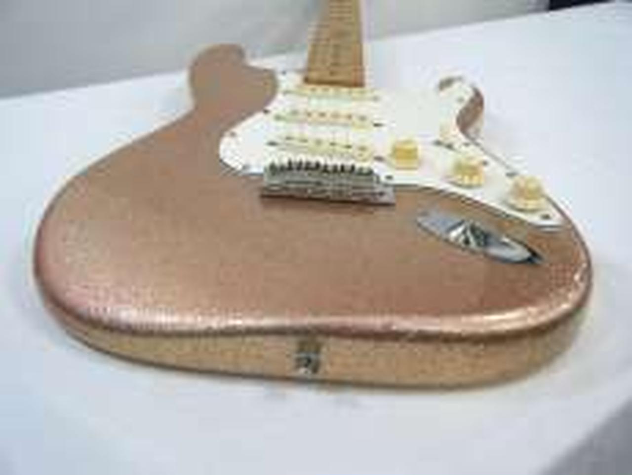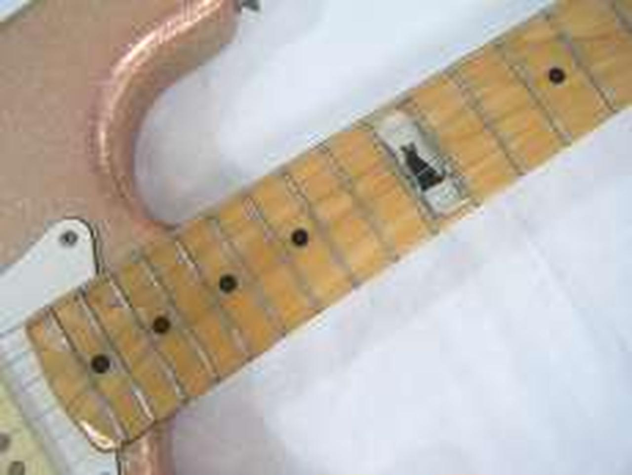 ラメ塗装のボディと12フレットの猫がかわいいです。 |