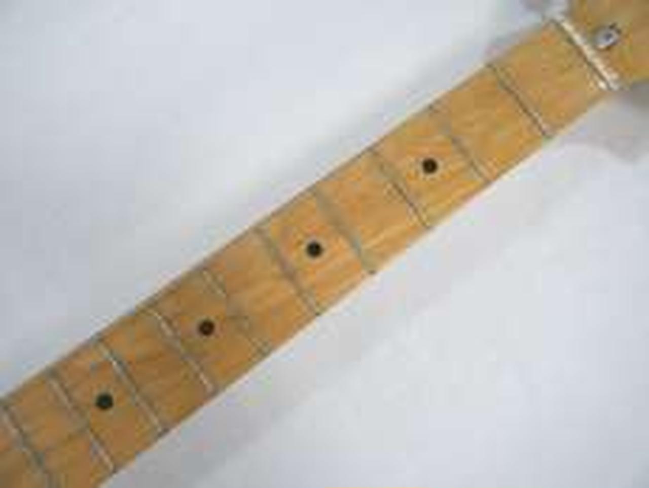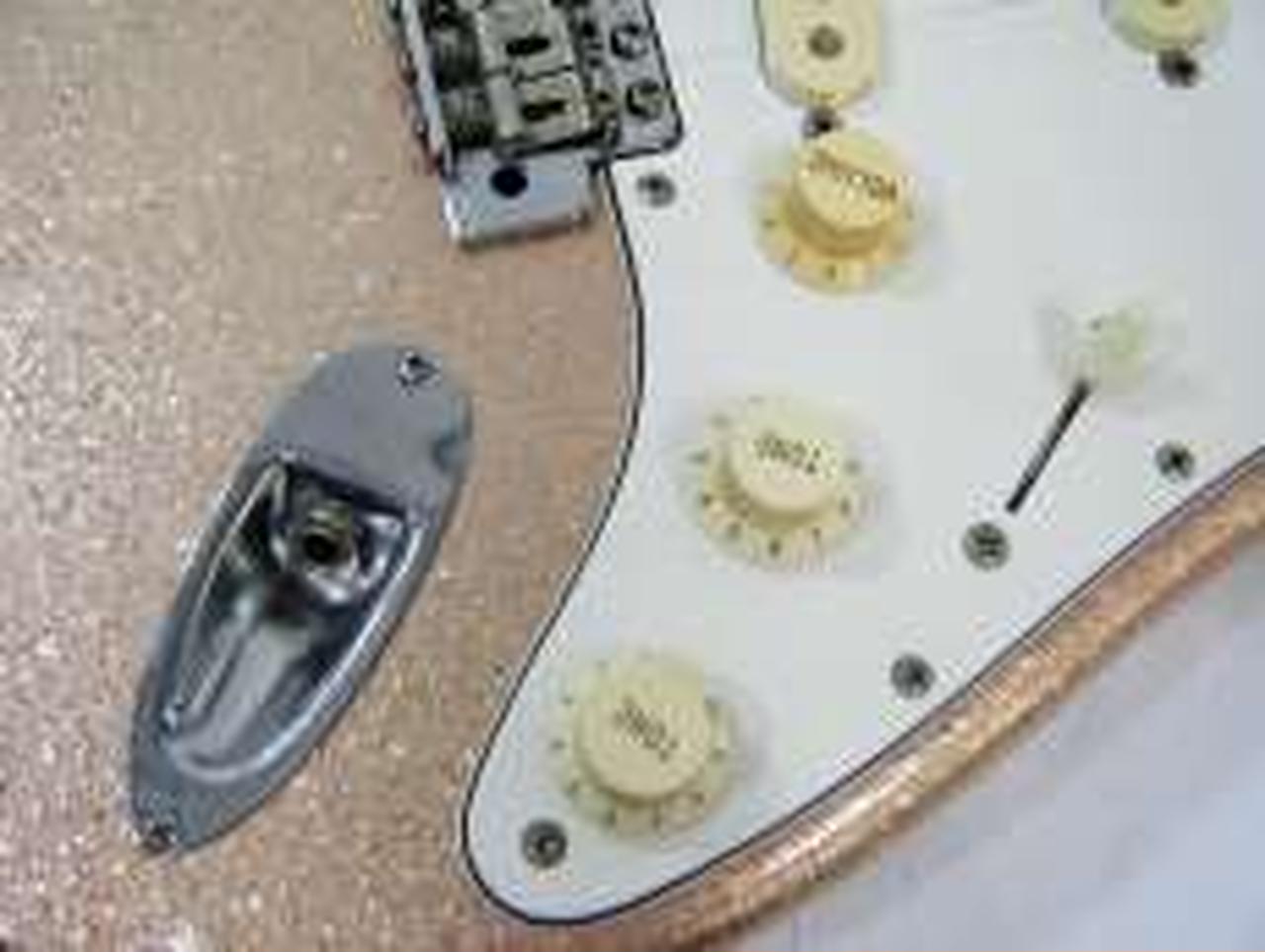キズ: ヘッドのフチに小傷があります。ネック裏に小傷や小さな凹みがあります。ピックガードは無数の小さな傷があります。金属部にはサビやくすみ、、傷があります。 |