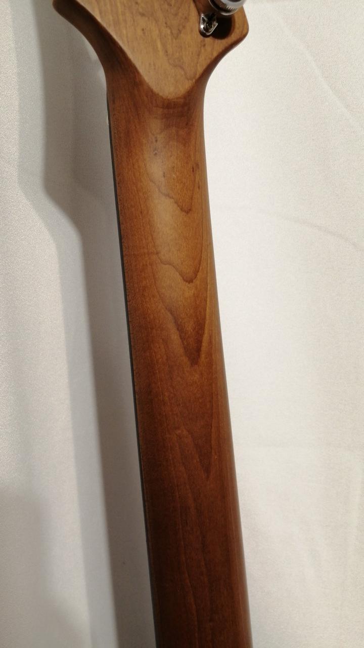 加熱処理されたメイプルネックにステンレスフレット、コンテンポラリーなデザインを目指したオリジナルボディ。 |