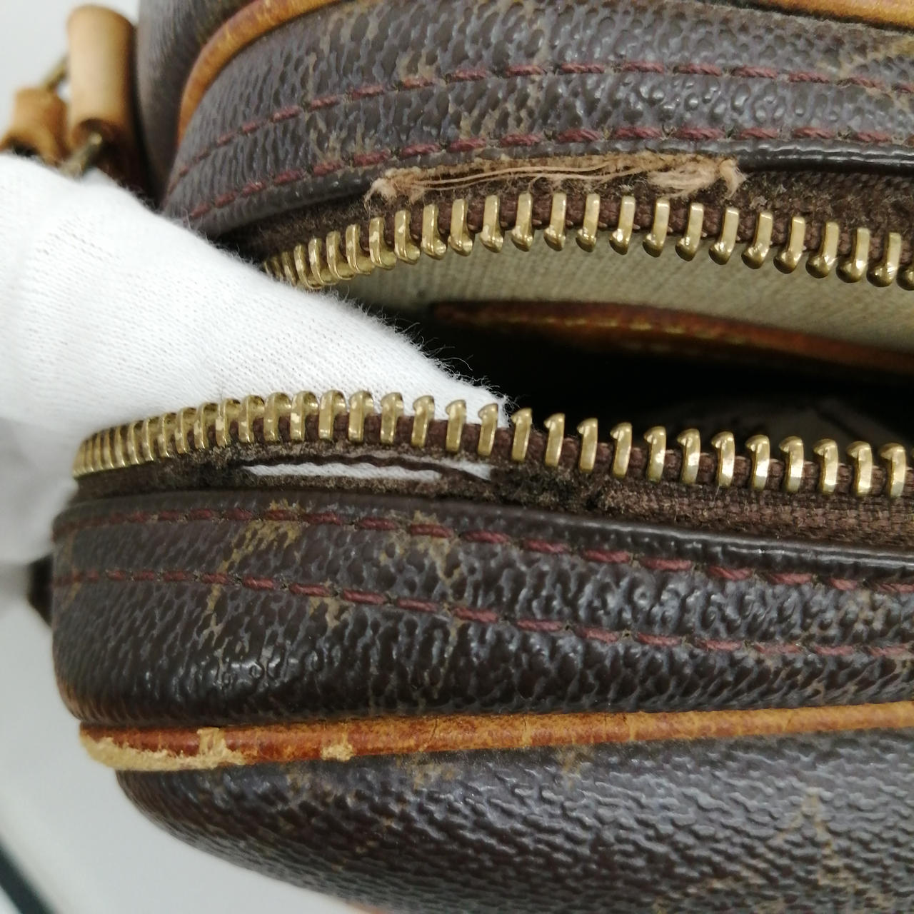 ショルダー紐の根元から切れています |