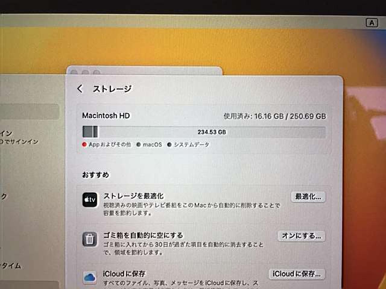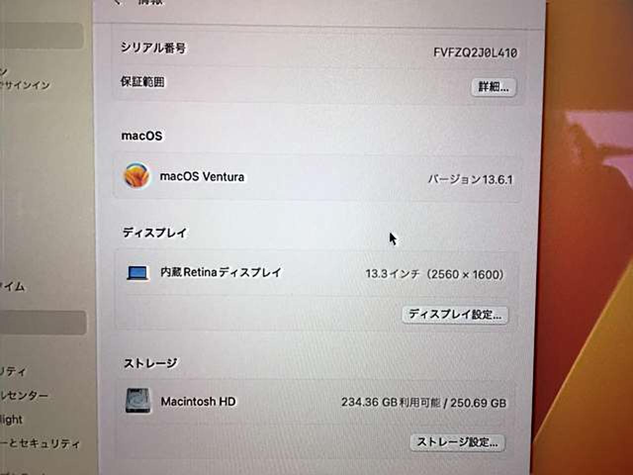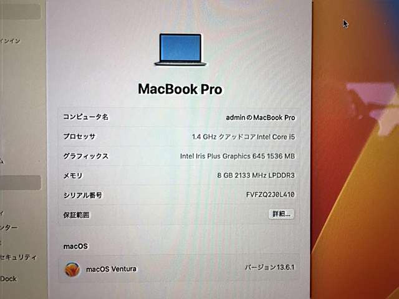 CPU:1.4GHz クアッドコア intel Core i5 メモリ:8GB バージョン:13.6.1 |