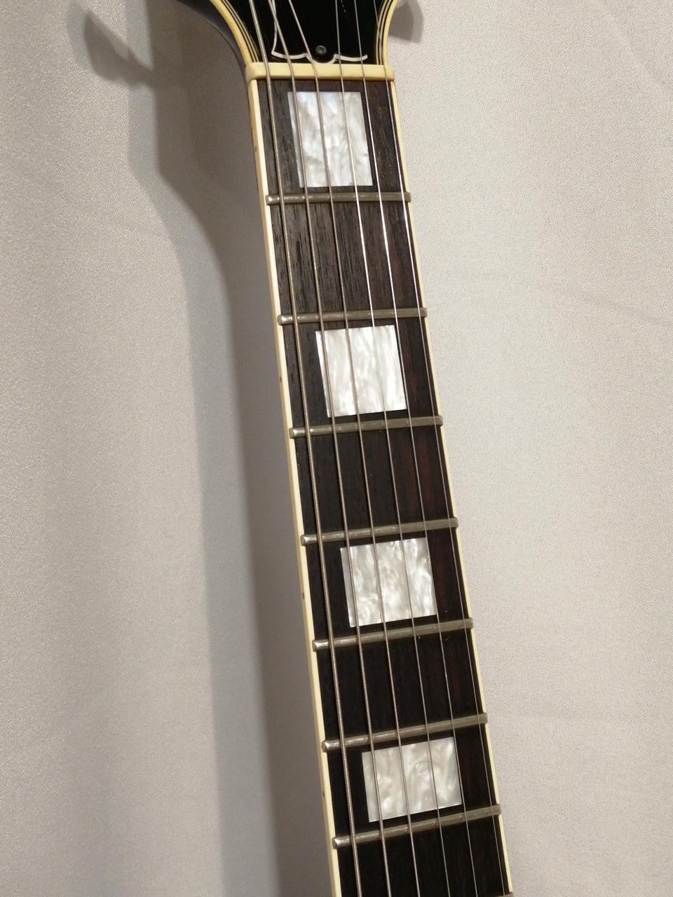 Gibson直系の国産Gibsonとして名を博したオービル。ダイヤモンドインレイが誇らしいです。国産のピックアップ搭載、しっかりとした質感のギターでパワー押さえ気味の繊細なサウンドが特徴。フレット残量約6割 |