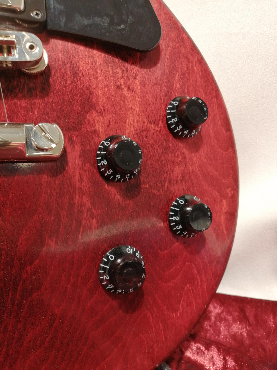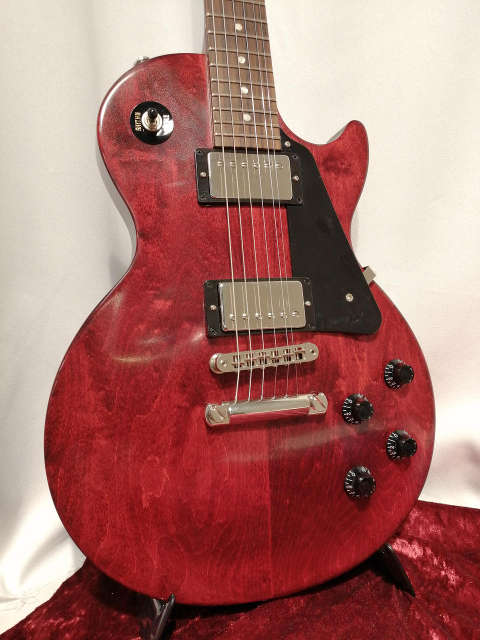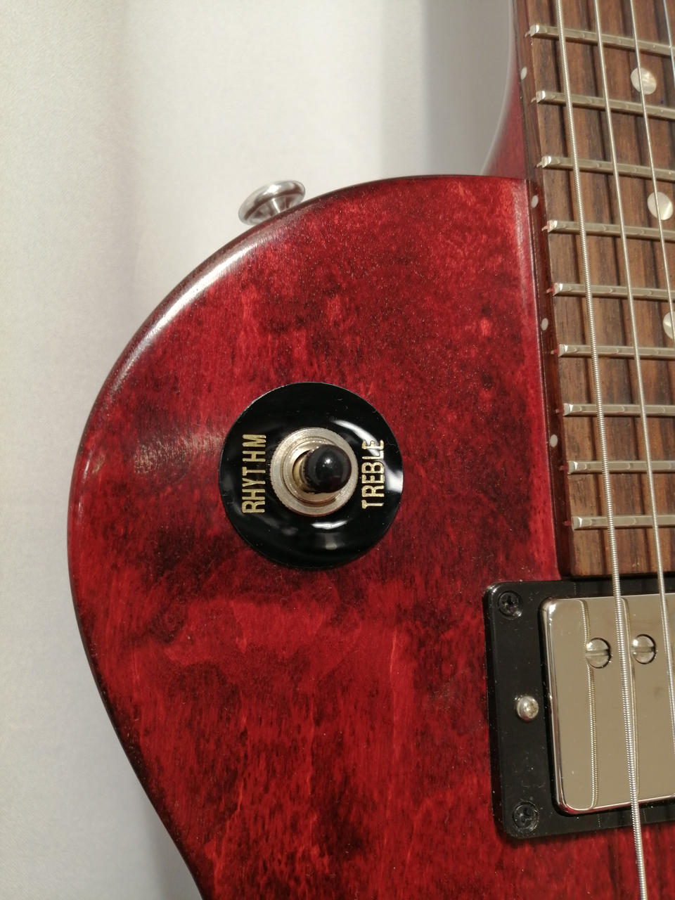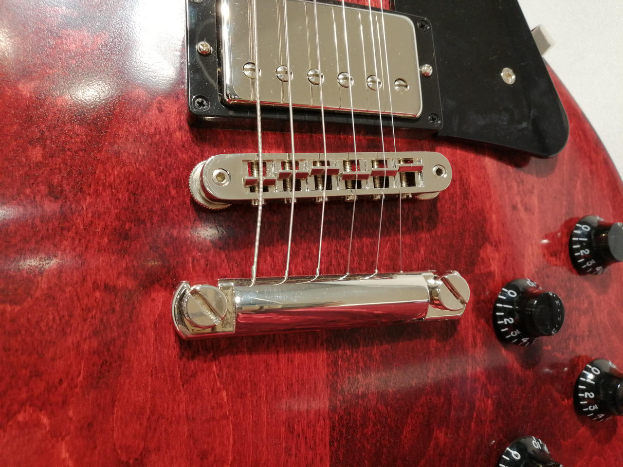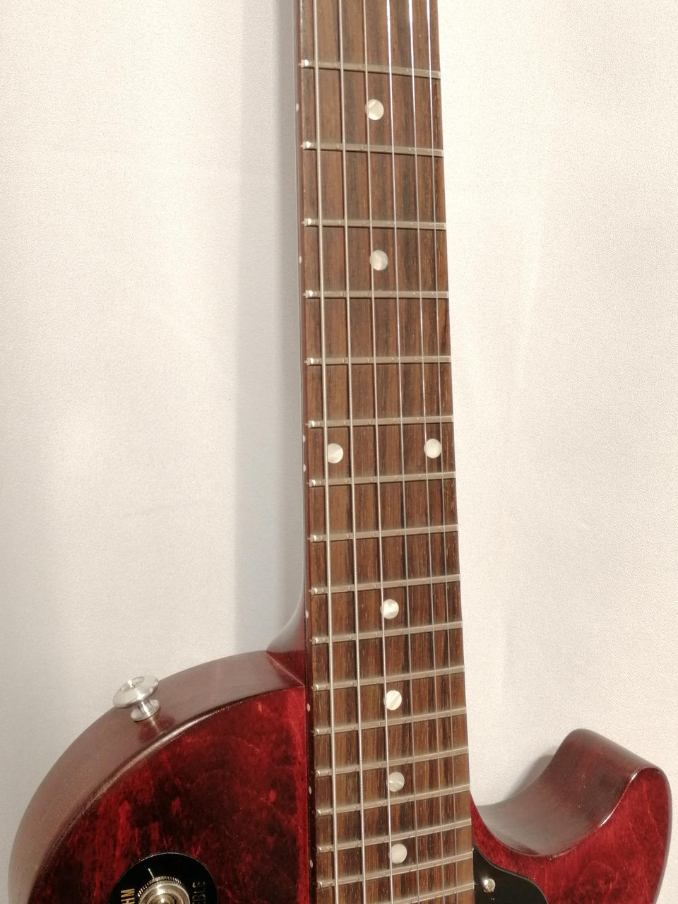 バインディングを廃し、ボディのトップはギブソンの伝統的な滑らかなカーブドメイプルトップ。 |