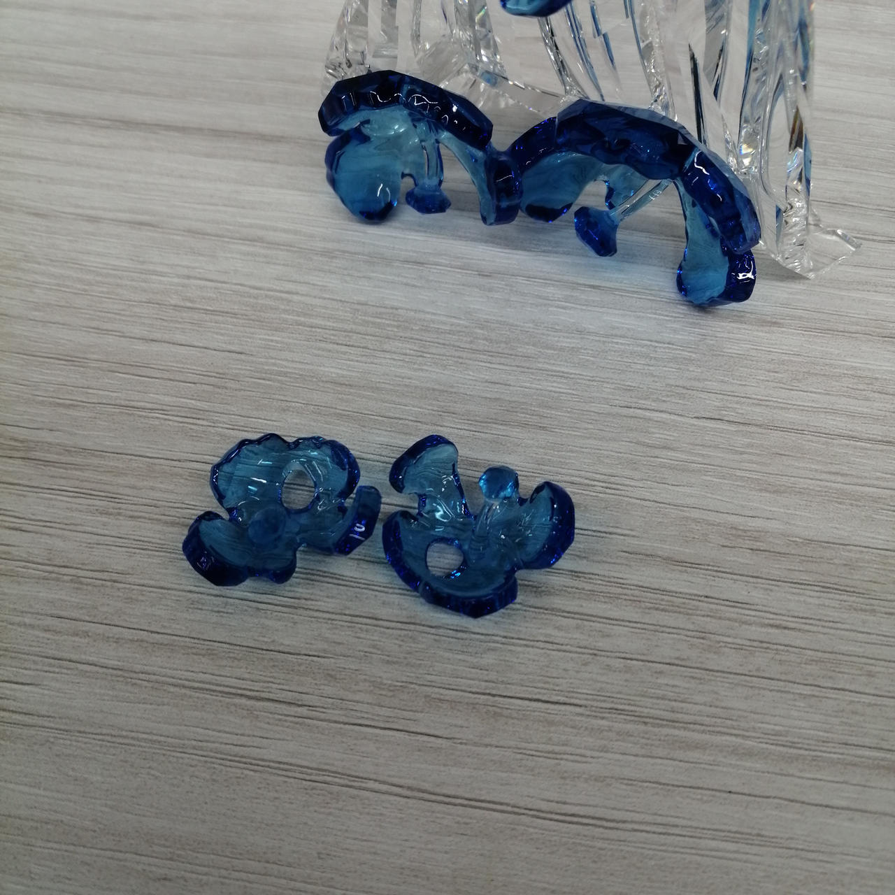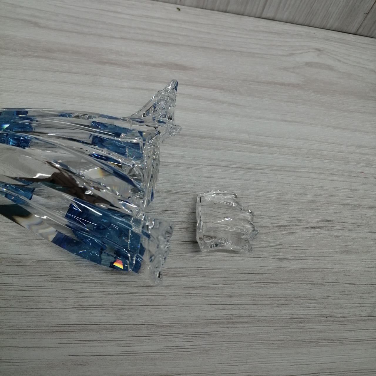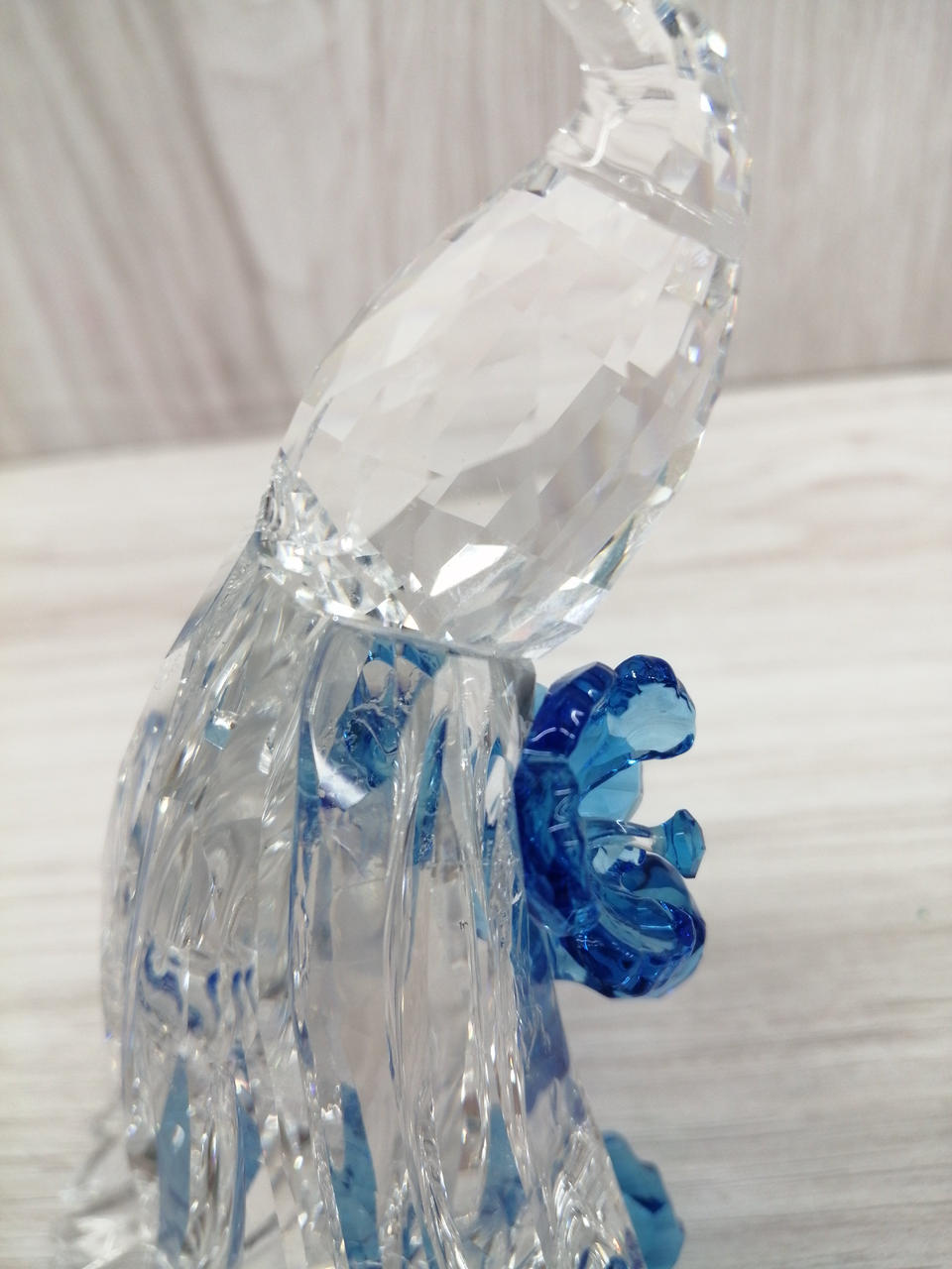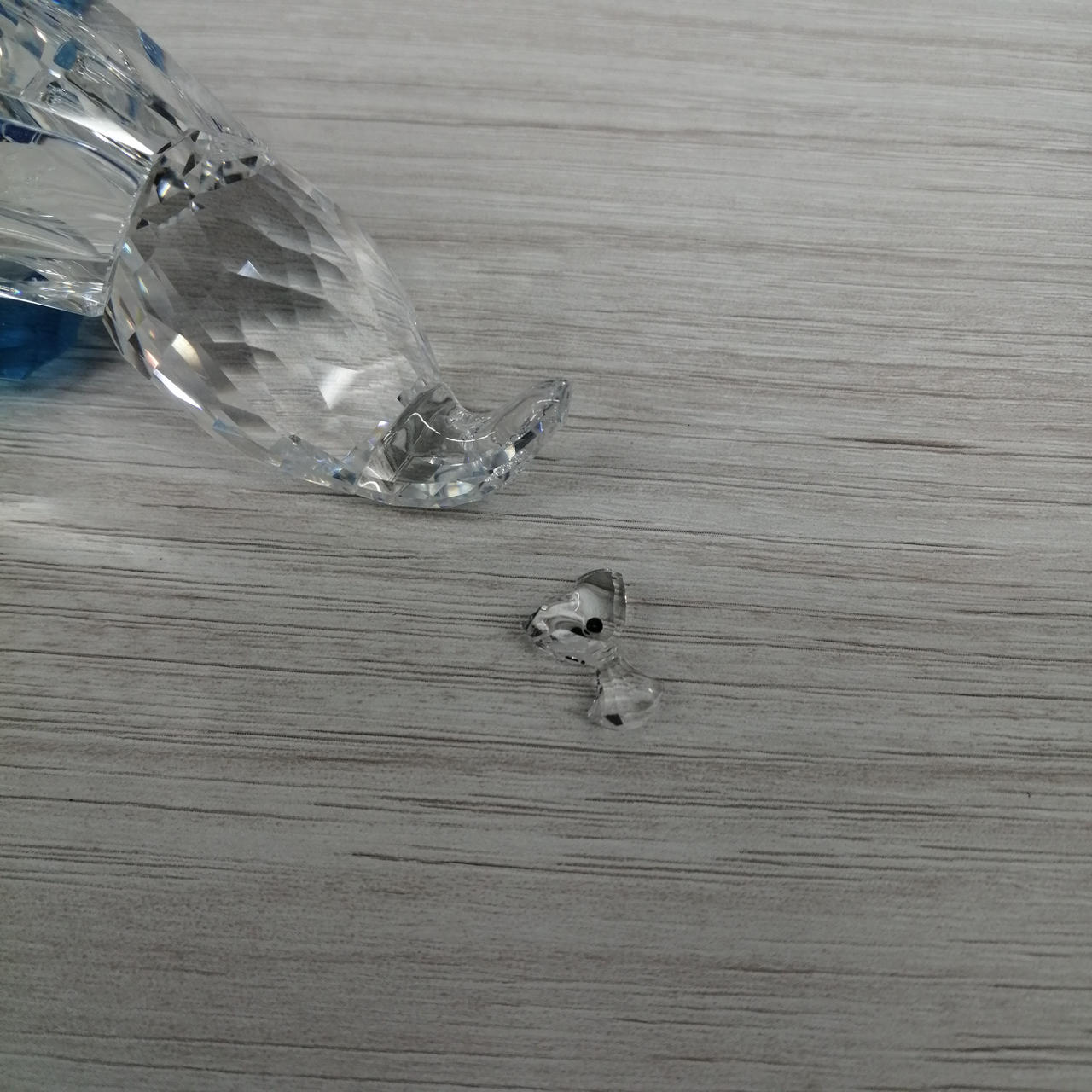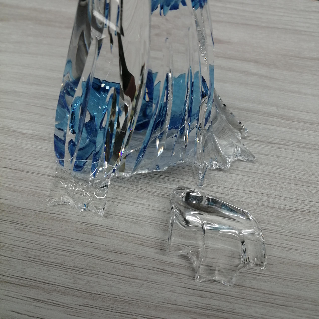 店頭にて展示中に倒れてしまい破損してしまいました。一部の部品が足りません。クチバシがありません。接着面は接着剤跡あります。 |