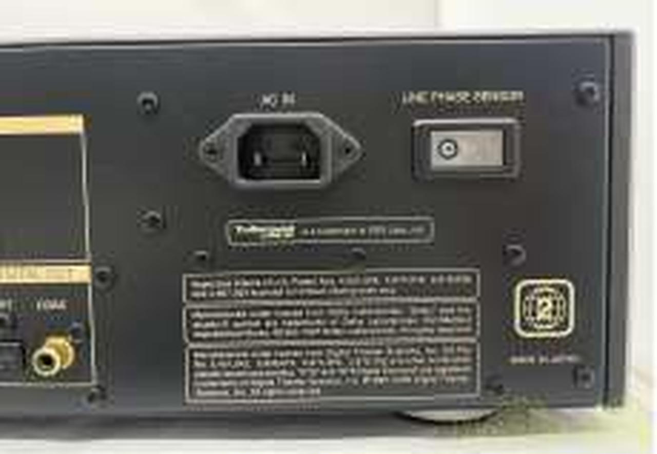 付属装置:電源スイッチ、ビデオOFFスイッチ/インジケーター、FE DACスイッチ/インジケーター、デジタルデータOFFインジケーター、FLディスプレイOFFインジケーター、FLディスプレイ、ディスクトレイ、オペレーションキー、ラインフェーズセンサー、ACインレット、リモコン、ACケーブル |