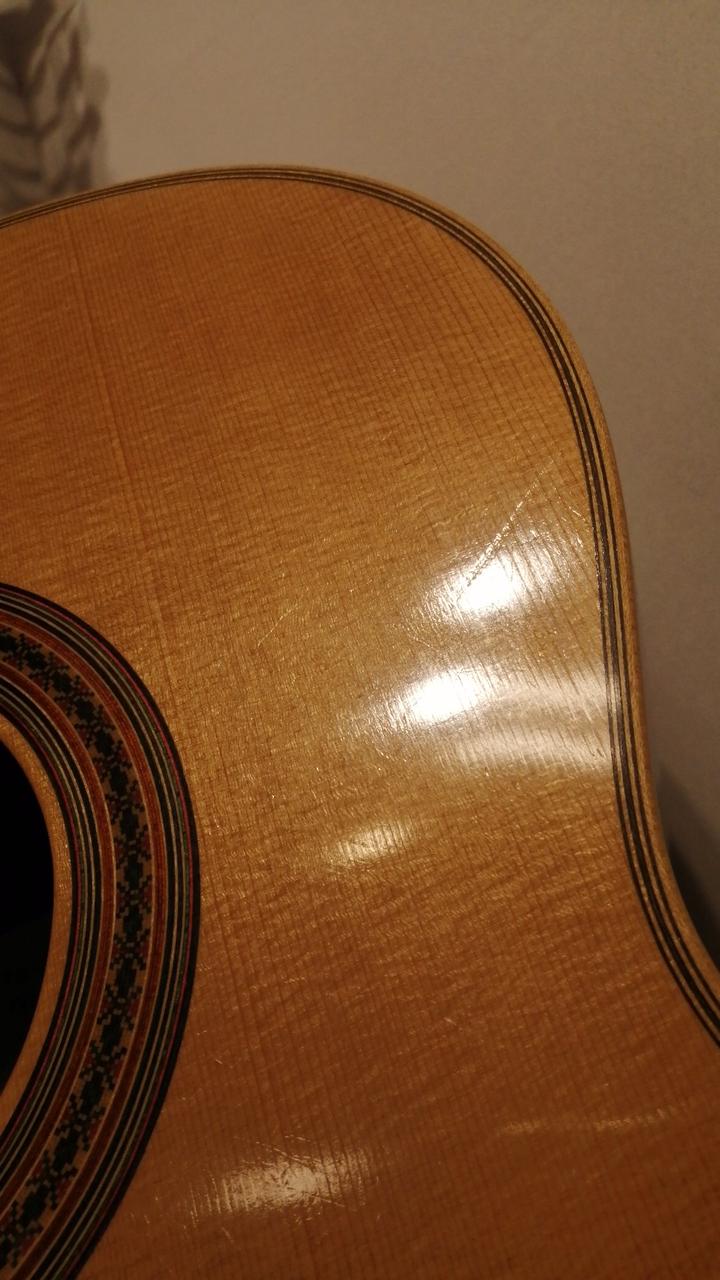 12フレット弦高:6弦側約3.8mm、1弦側約2.8mm。サドル出しろ6弦側約4mm、1弦側約3mm |