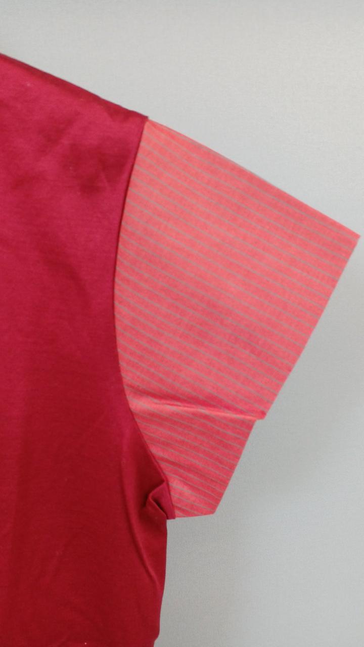 袖の箇所がストライプシャツ生地になっており、おしゃれな一品です♪ |