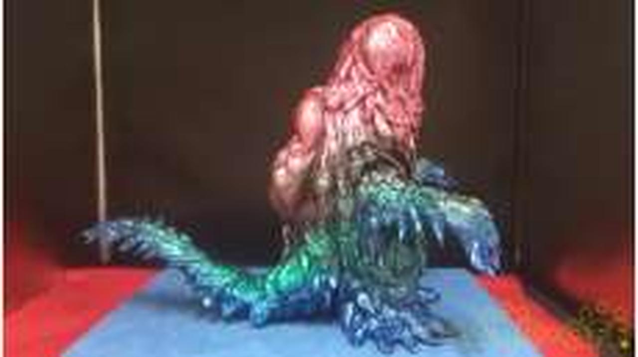【現状販売】【個人彩色品】ムービーモンスターシリーズのへドラをレトロソフビ風にリペイントしたものになります。全高:約16cm。 |