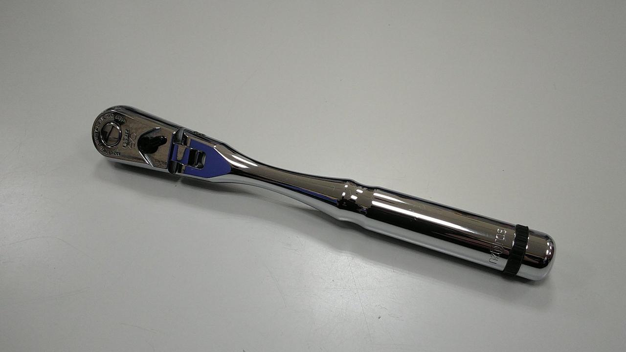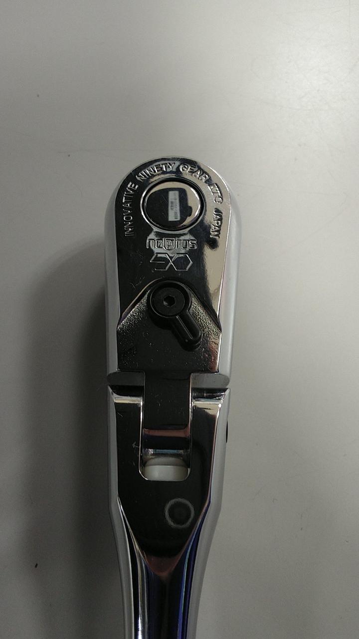 小判形ヘッドとしては世界最高クラスの90枚ギアを採用、送り角度4°のフレックスタイプラチェットハンドルです |
