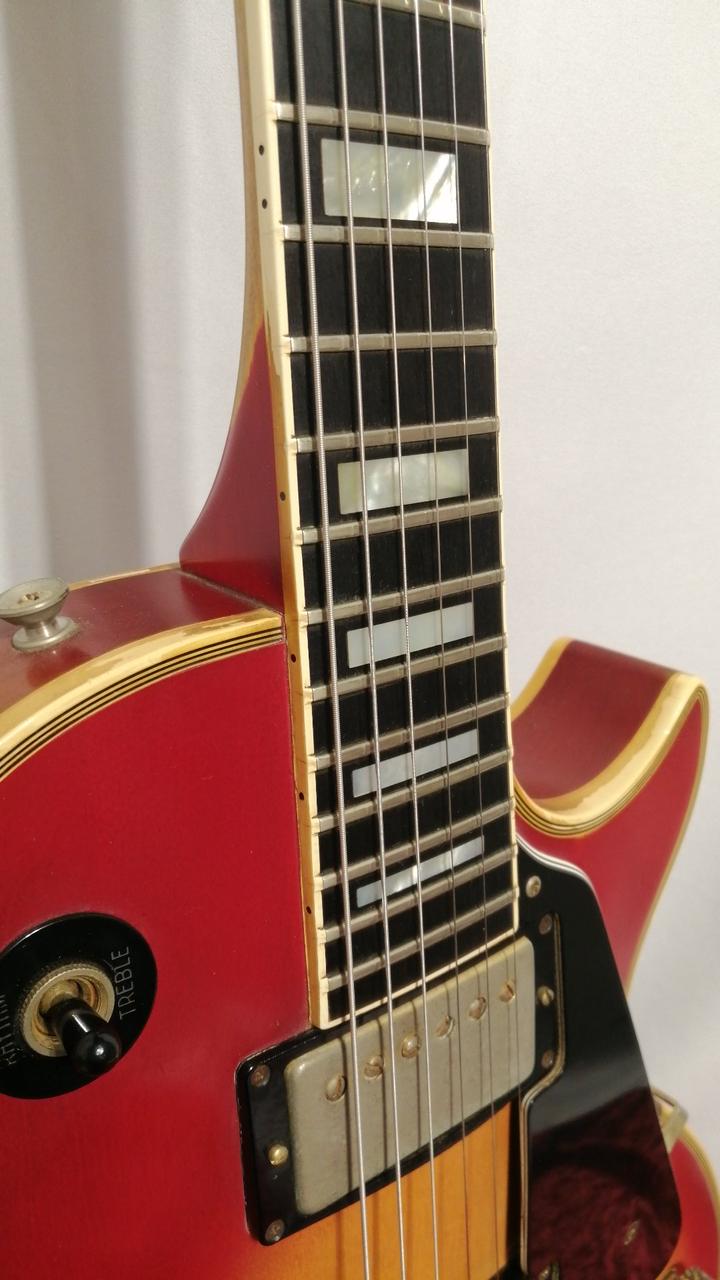 3ピースメイプルトップ/3ピースメイプルネック/エボニー指板のチェリーサンバーストレスポールカスタム。 |