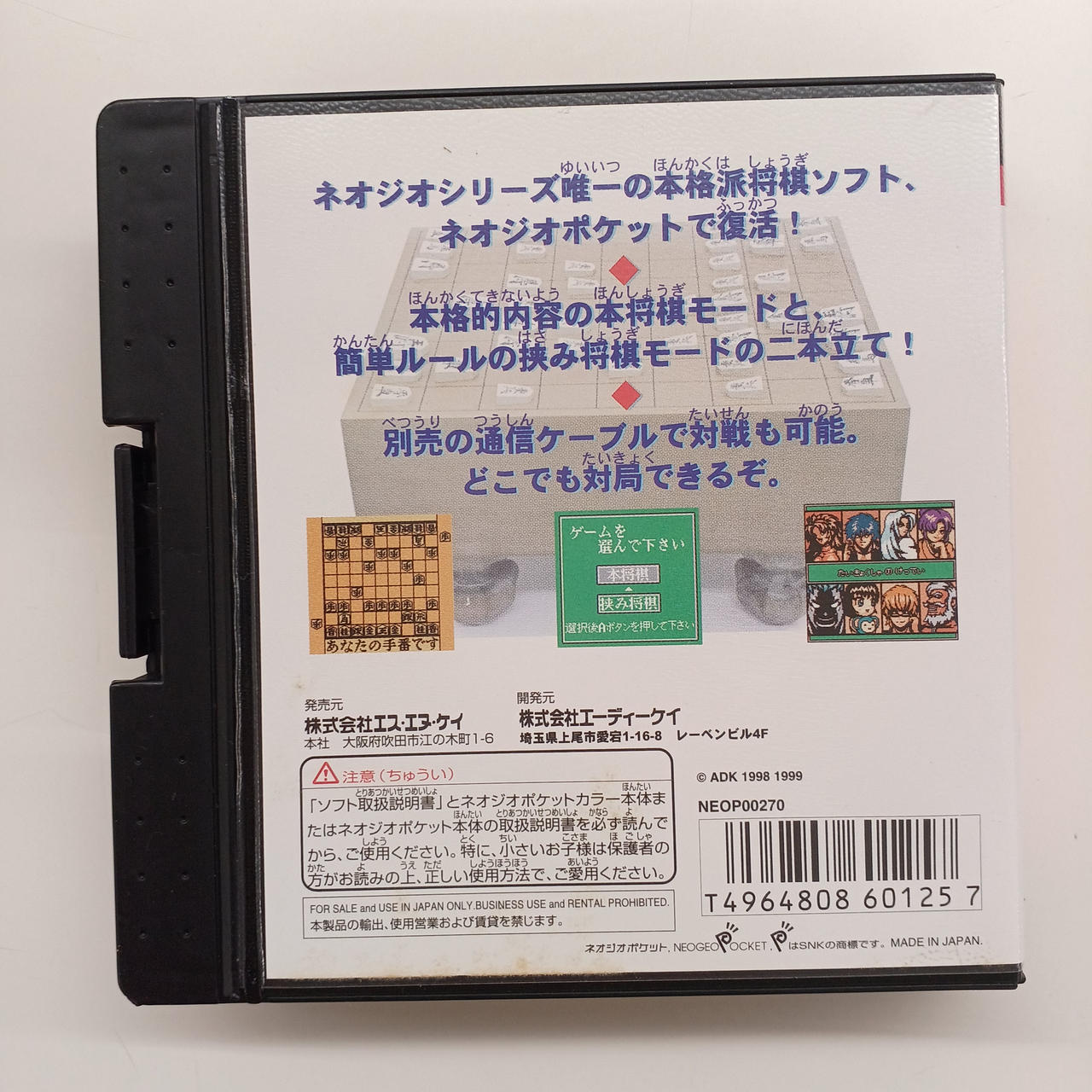 将棋ファンにはたまらない本格的な内容の本将棋と簡単なルールの挟み将棋モードがついて好評だった「将棋の達人」のネオジオポケット版!