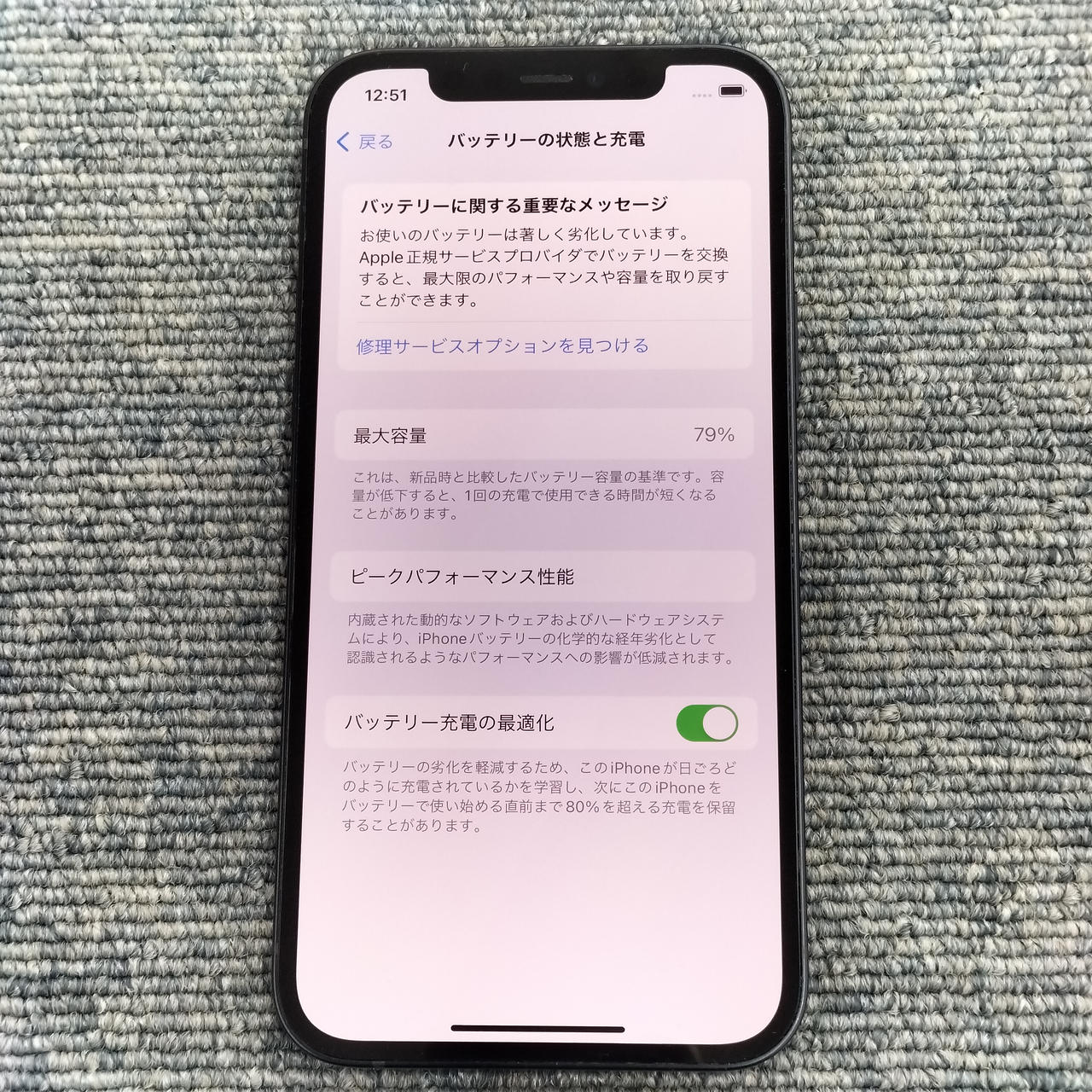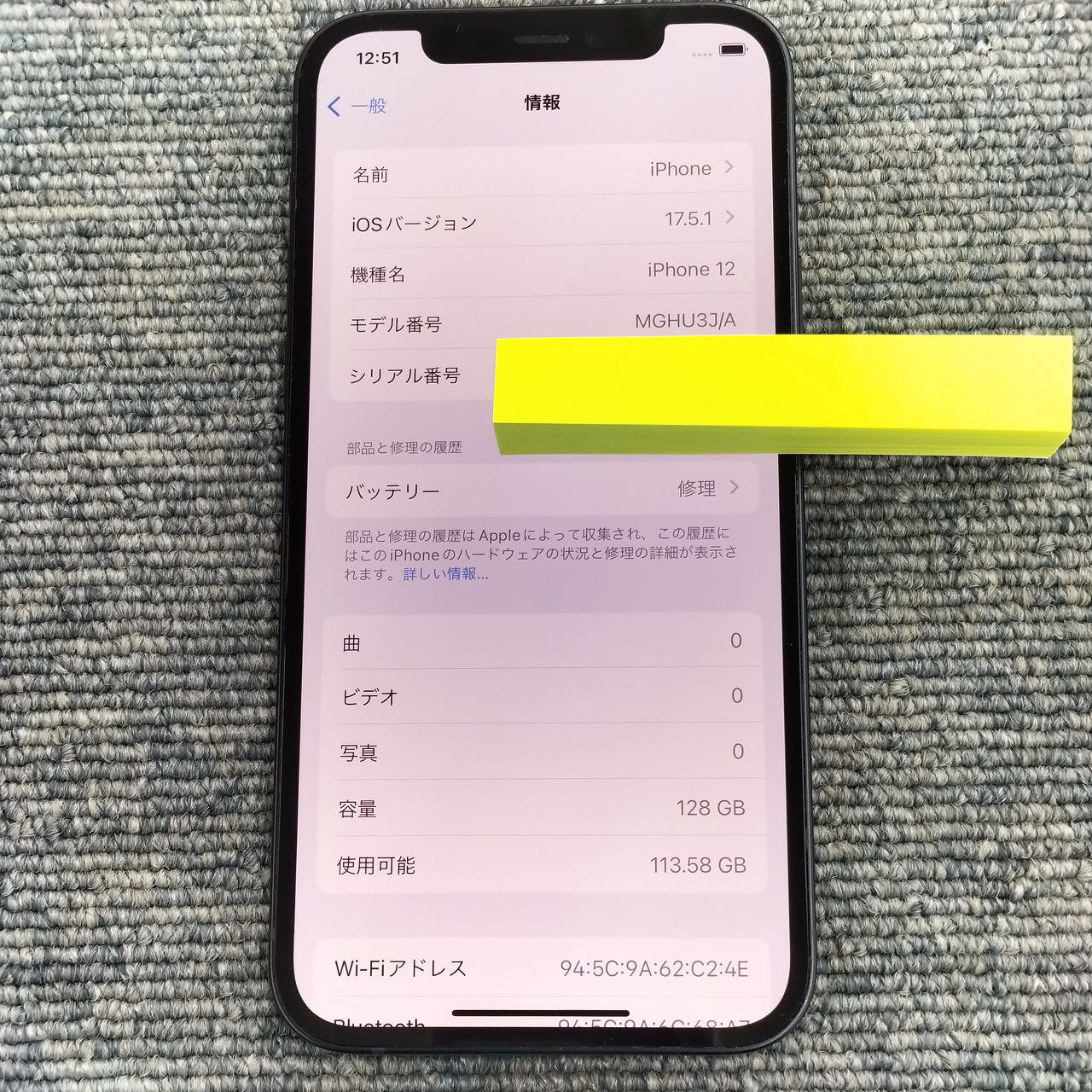 128GBモデル OS:17.5.1 バッテリー最大:79% |