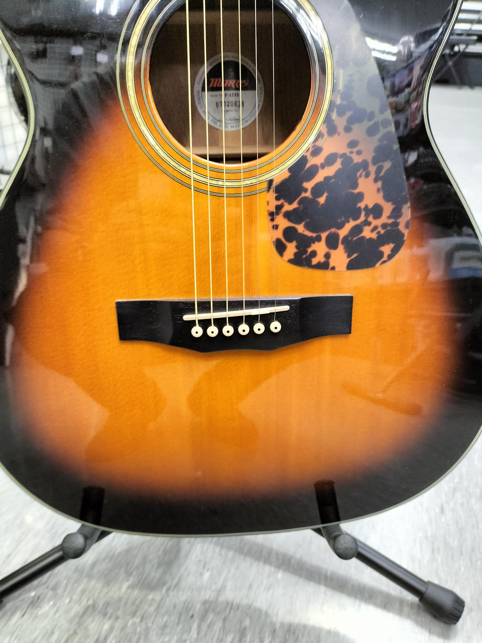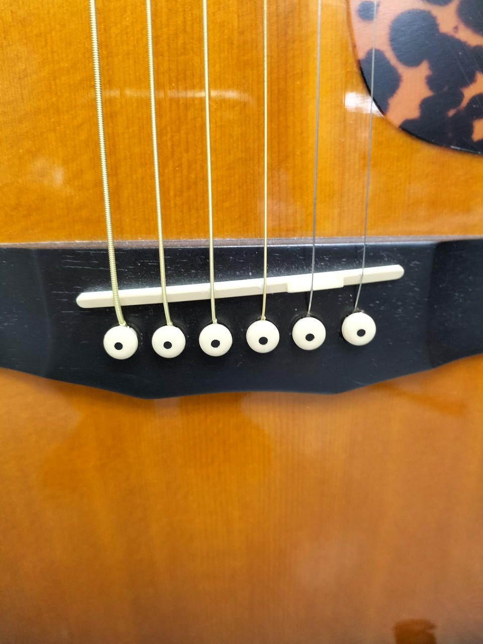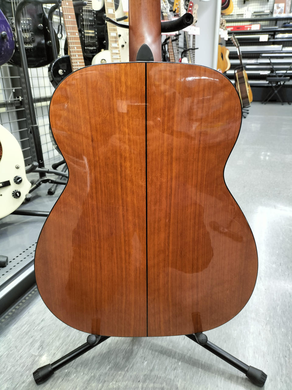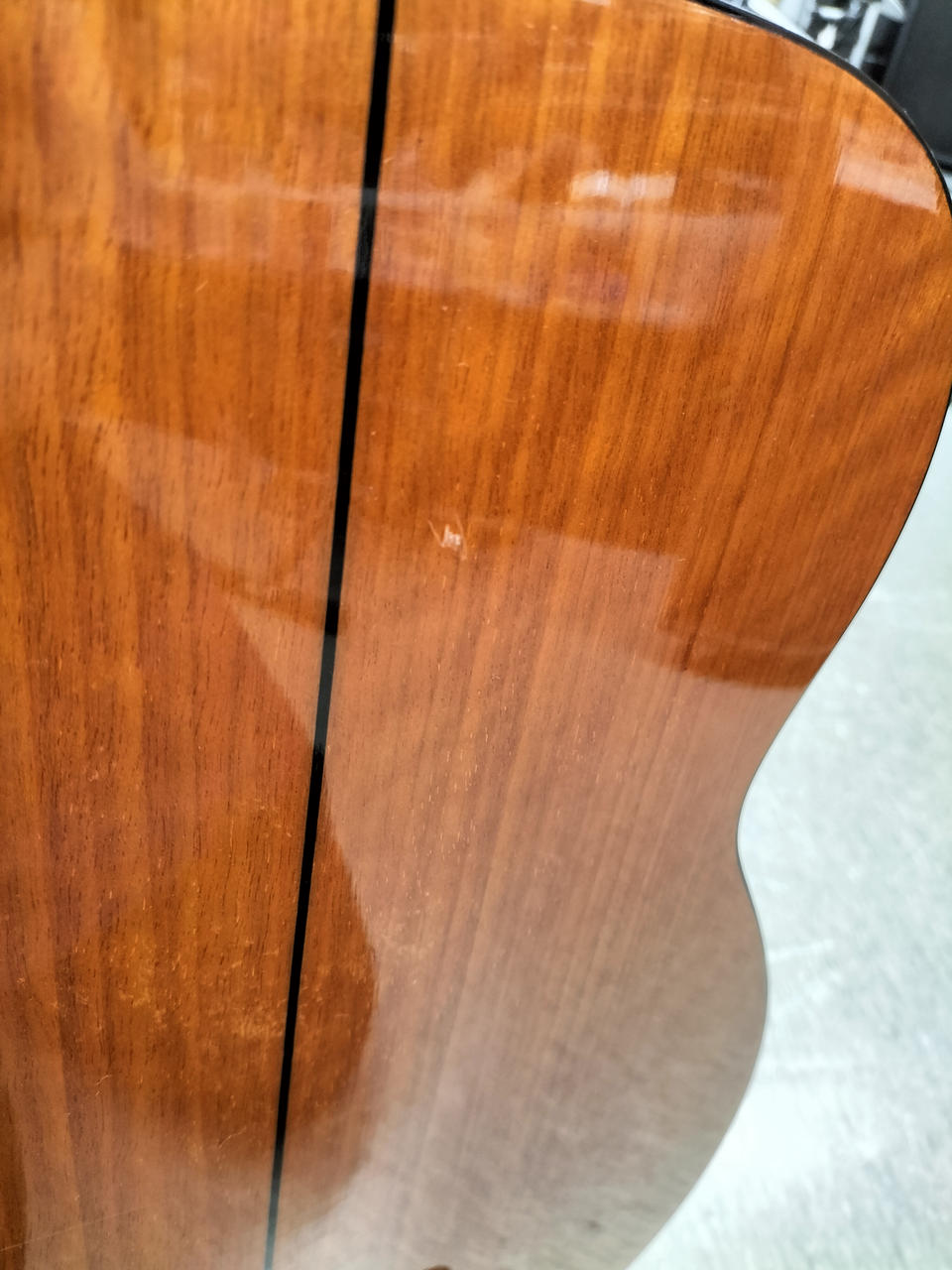 ネックが反っている為、ハイフレットになるほど、弦高が高くなります。 |