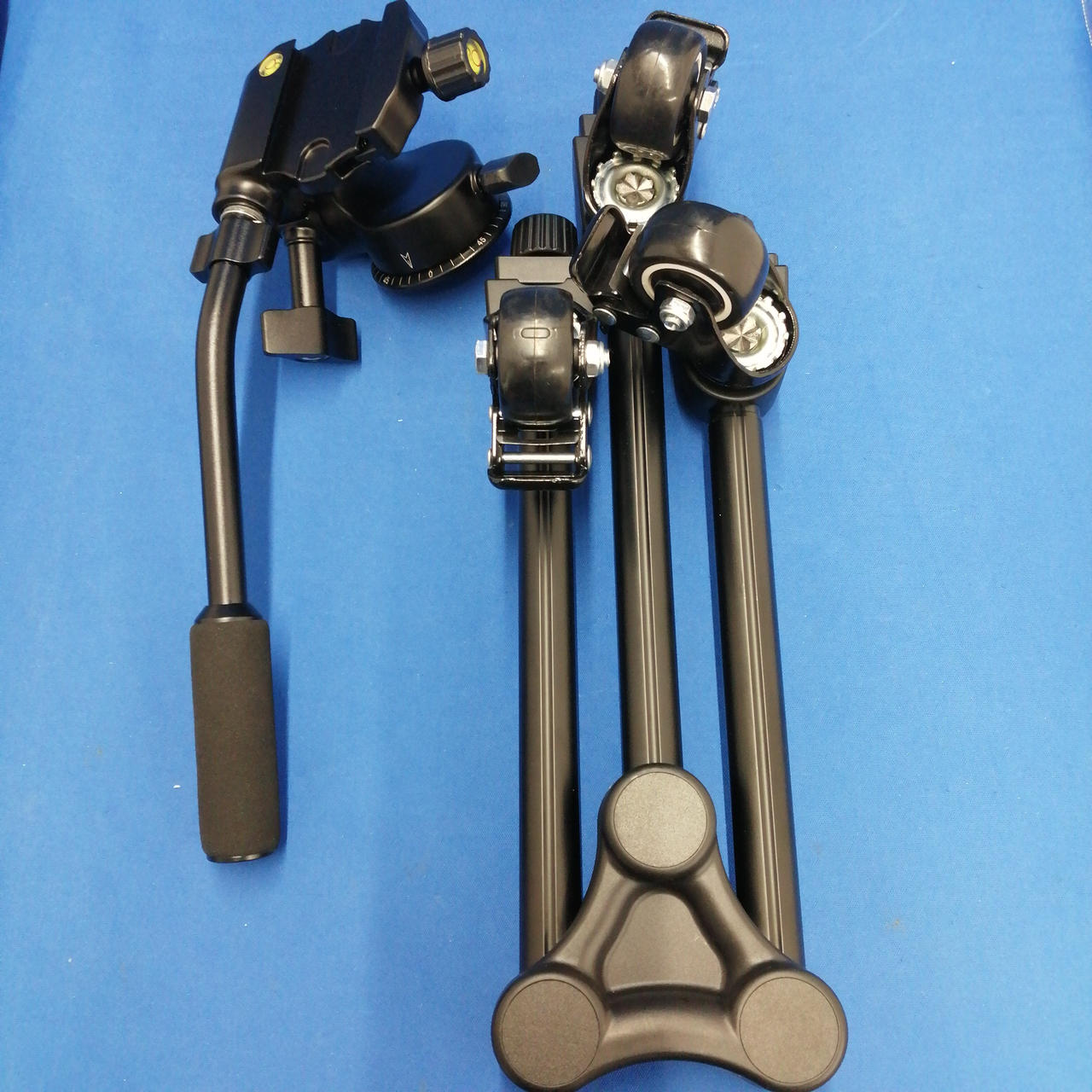 移動しながらの撮影や様々なアングルでの撮影が気軽にできる、キャスター付きの軽量ドリーポッド※雲台欠品です |