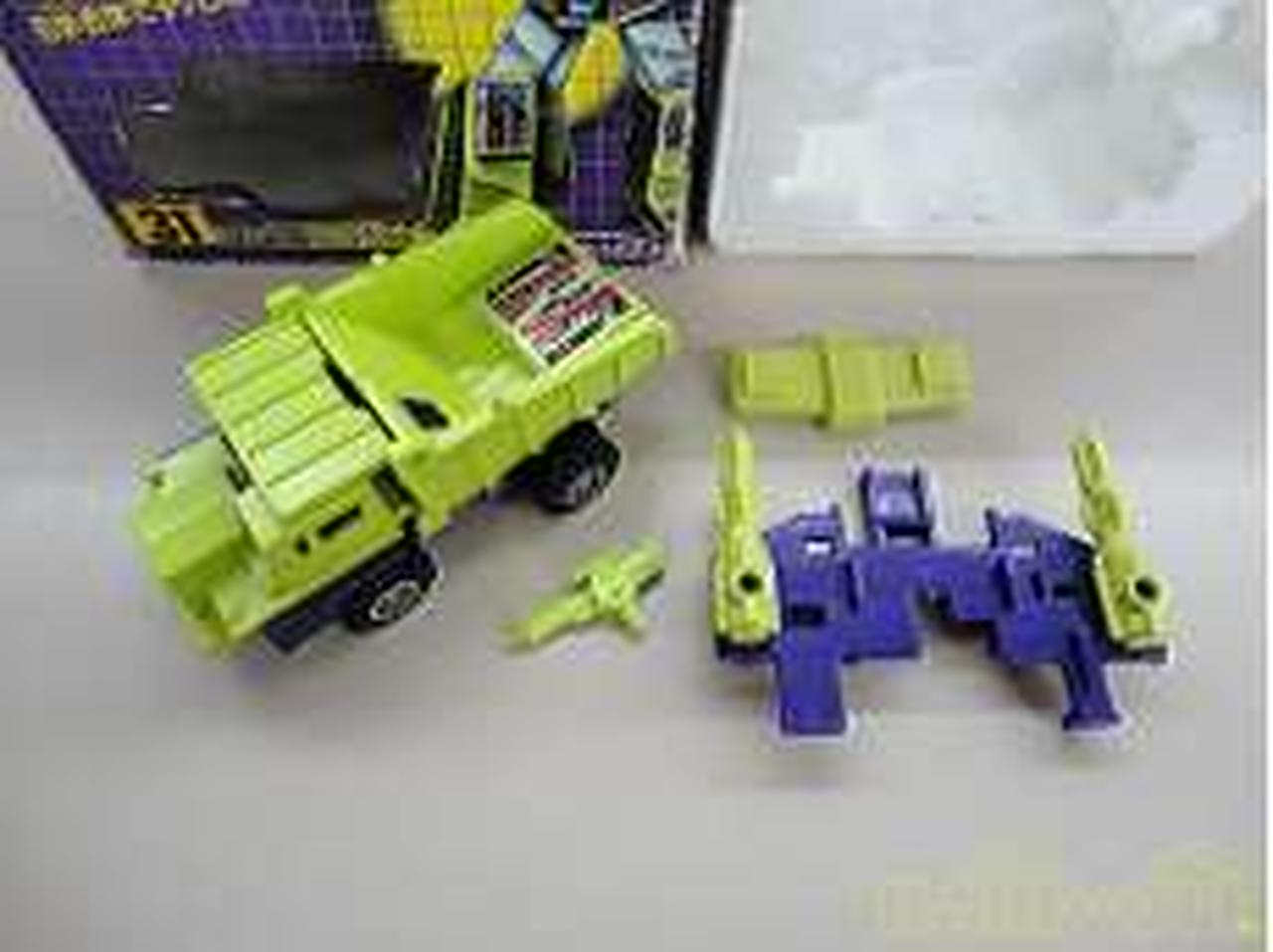 トランスフォーマー ビルドロン6体(31:輸送兵ロングハウル、32:建築兵スクラッパー、33:衛生兵グレン、34:偽装兵ミックスマスター、35:採掘兵スカベンジャー、36:破壊兵ボーンクラッシャー)のセット販売です。バラ売りはいたしません。それぞれ外箱に破れ、擦れ、折れ、潰れなど大きなダメージがあり状態は悪いです。すべて取説が欠品しておりシールも貼り付け済みで剥がれているものもあります。それぞれパーツの有無はチェックしておりませんので掲載写真をご確認ください。各ロボットの変形・合体ギミックはチェックしておりません。大変古いおもちゃになりますのでどこかが破損していたり歪んでいる可能性がありますのでジャンク品(返品・返金不可)扱いとさせて頂きます。商品の状態とパーツの有無は掲載写真をよくご確認頂き、ご納得の上、ご注文をお願いいたします。 |