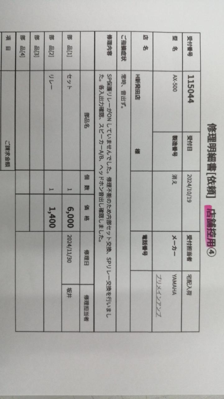 メンテナンス内容:内部セット交換、リレー交換。各入出力確認、その他動作確認。 |