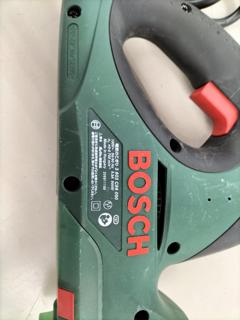 動力:コード式(約2M) 対応電圧:100V 最大ストローク数/分:2700回 |