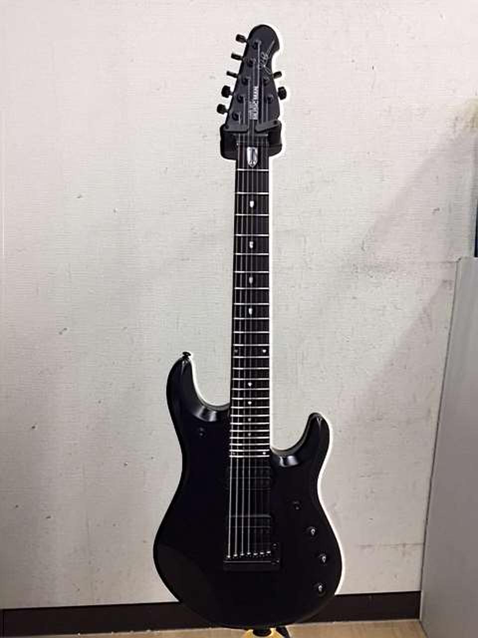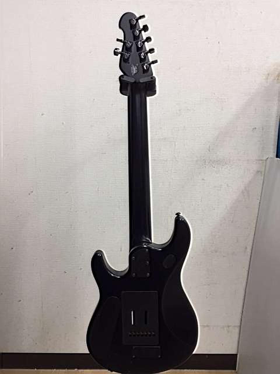 指板、パーツに至るまで真っ黒に仕上げた7弦仕様のジョン・ペトルーシモデル |