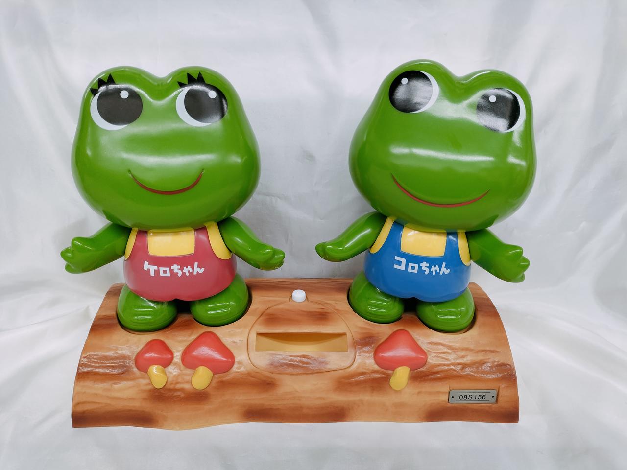 ケロちゃんの內部に小さい玉のような物が入っていて、カラカラ音がします。キズ、変色有り。時計無しです。本体のみ。 |