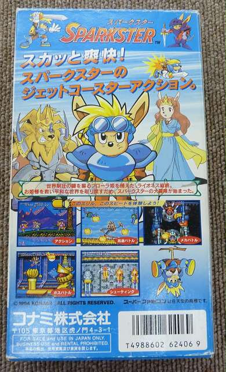 元々はメガドライブの「ロケットナイトアドベンチャーズ」がオリジナル。同じくメガドライブでの続編「スパークスター ロケットナイトアドベンチャーズ2」と本作は同時期(94年9月)の発売であった。しかし内容は全く異なっており、SFC版独自のアクション「ローリング」も追加された。 |