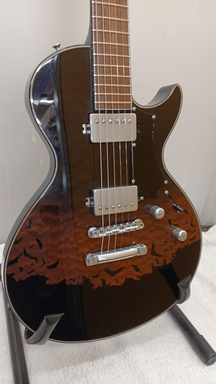 Sugiの幸せの象徴でもあるコウモリのバースト塗装が入っておりシンプルにかっこいい一本 |