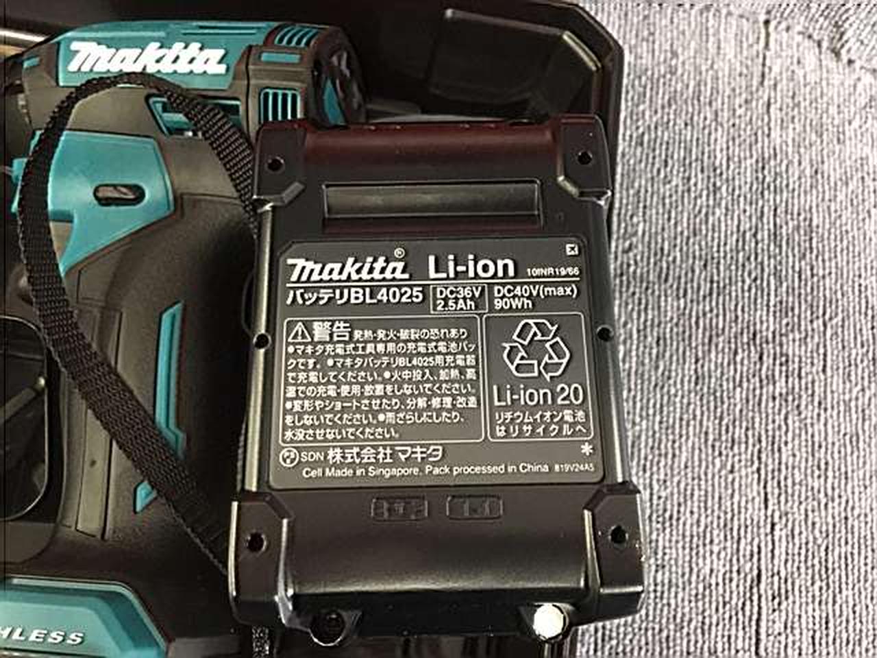 対応電圧:36V バッテリー電圧・容量:36V(40Vmax) 2.5Ah×2個 打撃モード:4段階 充電器:標準 最大締め付けトルク:220N・m |