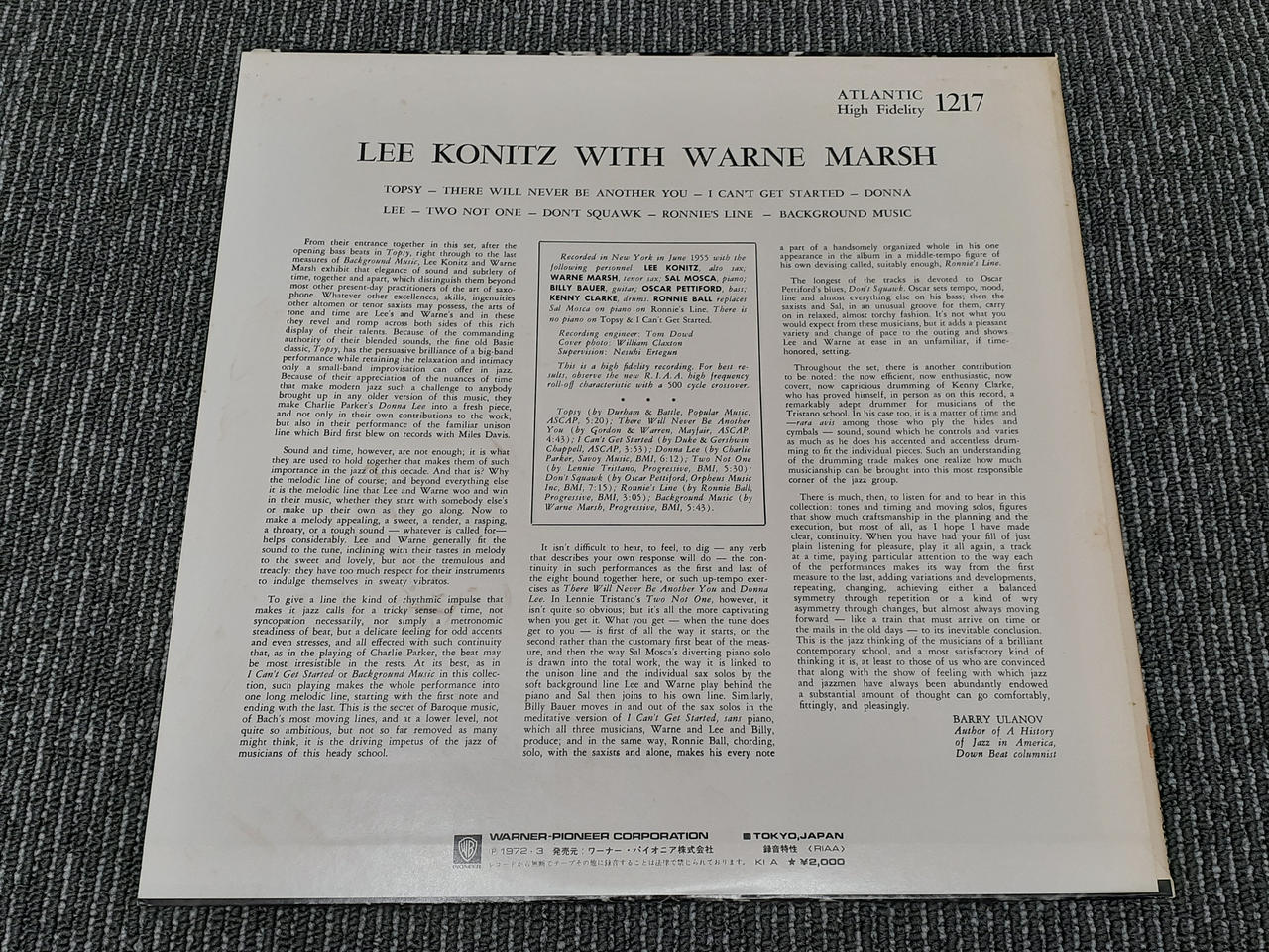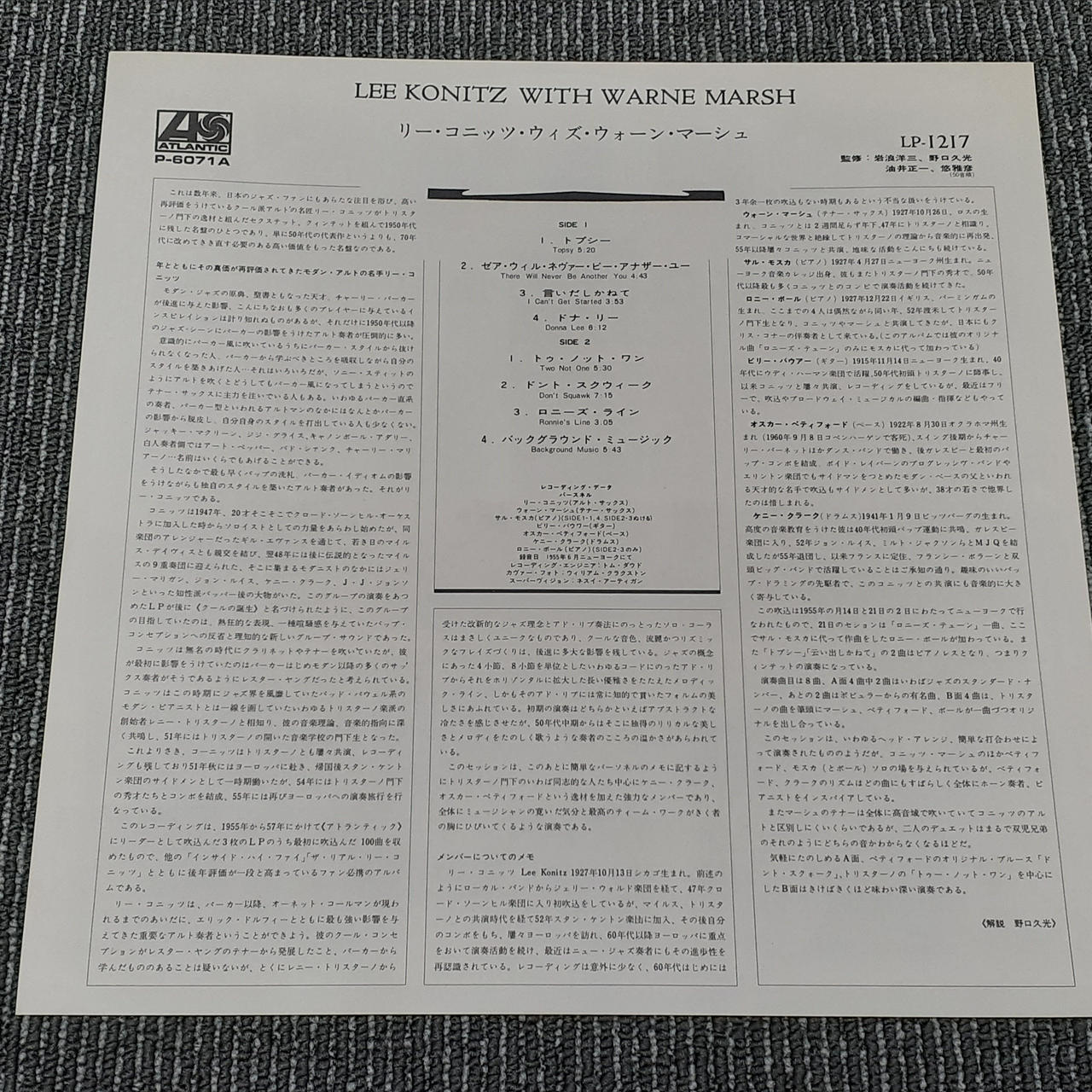 型番:LEE KONITZ WITH WARNE MARSH