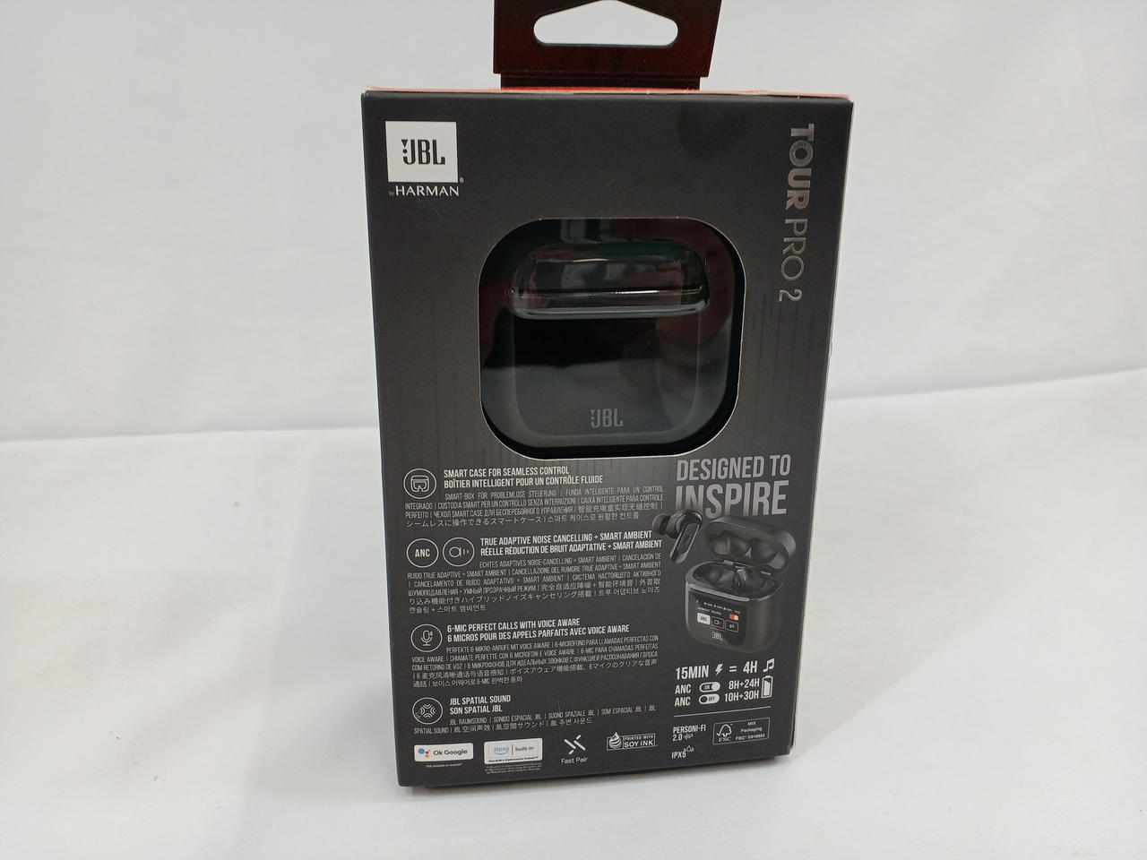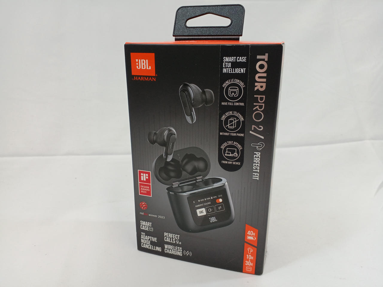 ハイブリッドノイズキャンセリング完全ワイヤレスイヤホン。充電ケースのスマートタッチディスプレイからイヤホンの設定、通話と再生の管理が可能です。 |