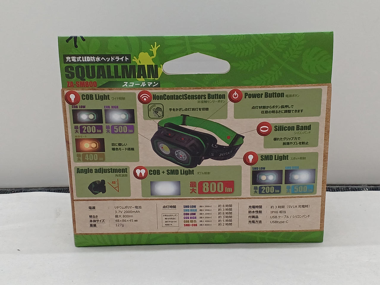 充電式LED防水ヘッドライト スコールマン