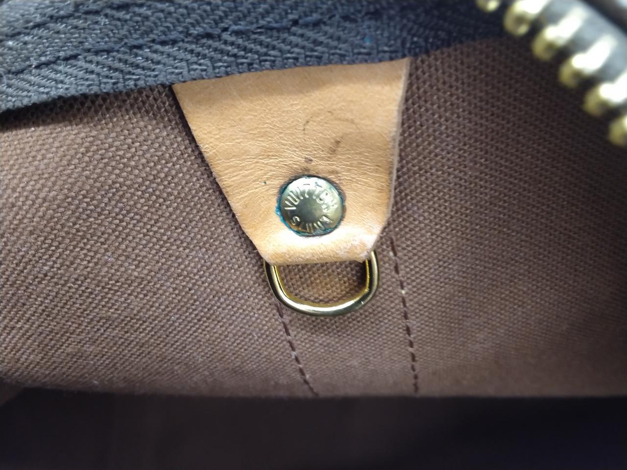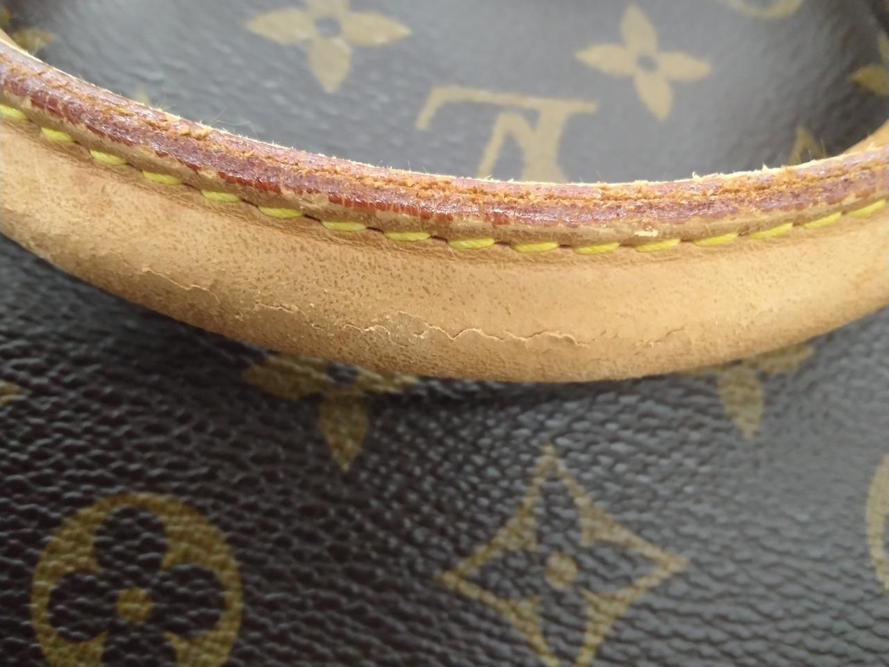 角スレやレザー部分にひび割れが見られます。