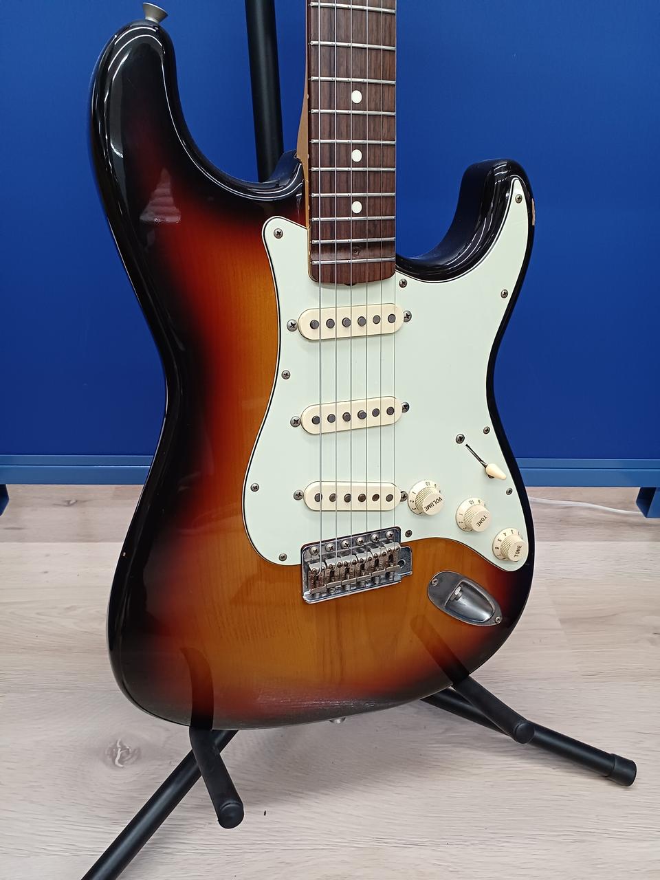 1997年-2000年にダイナ楽器で組み込みされたサンバーストのストラトキャスターです!※指板20Fだけスキャロップ加工されています |