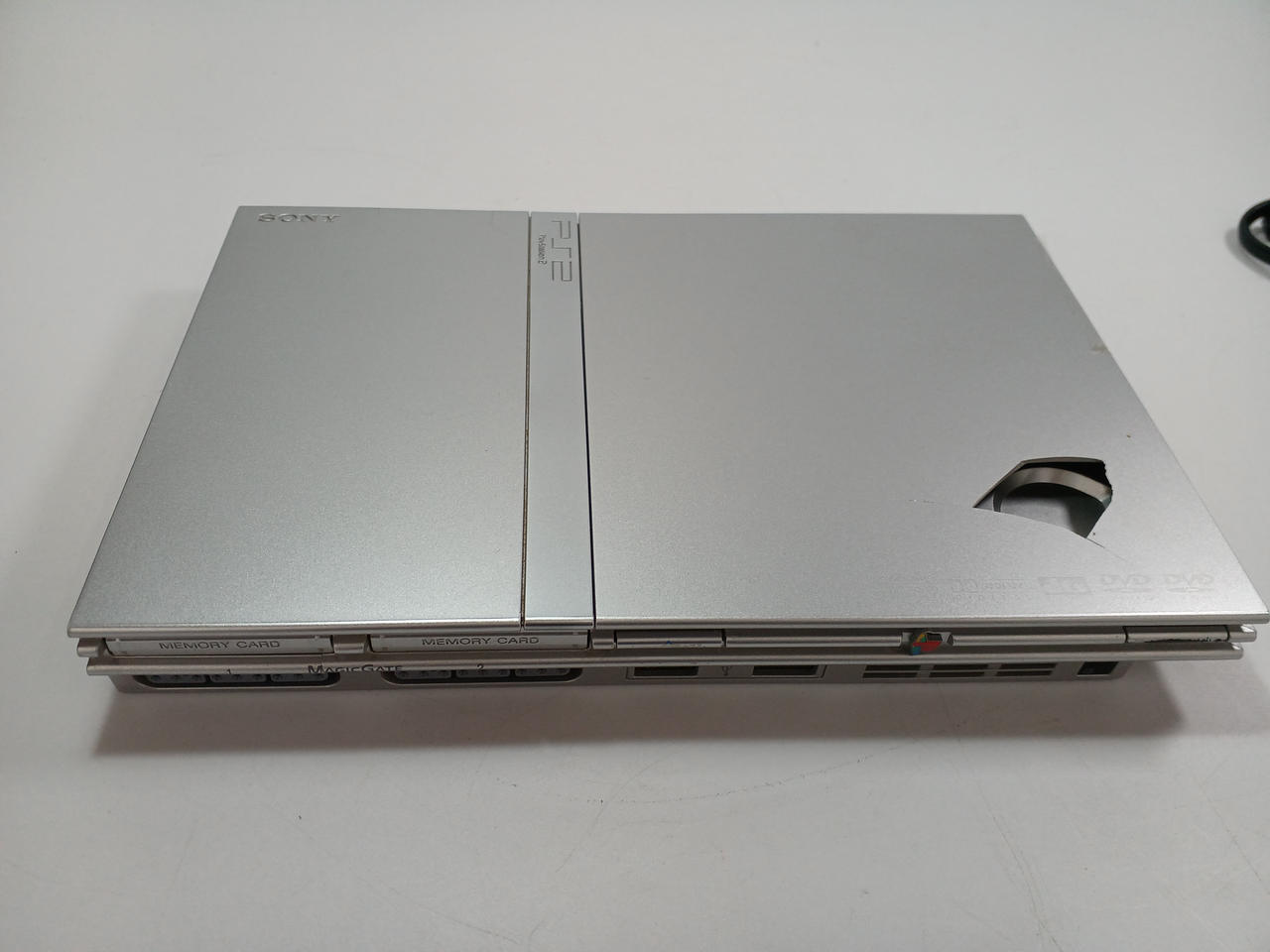 チェック時ディスク読み込みました。ディスク挿入部分のフタが破損してます(破片が中に入ってます。)本体のみ 現状でのお渡しとなります。